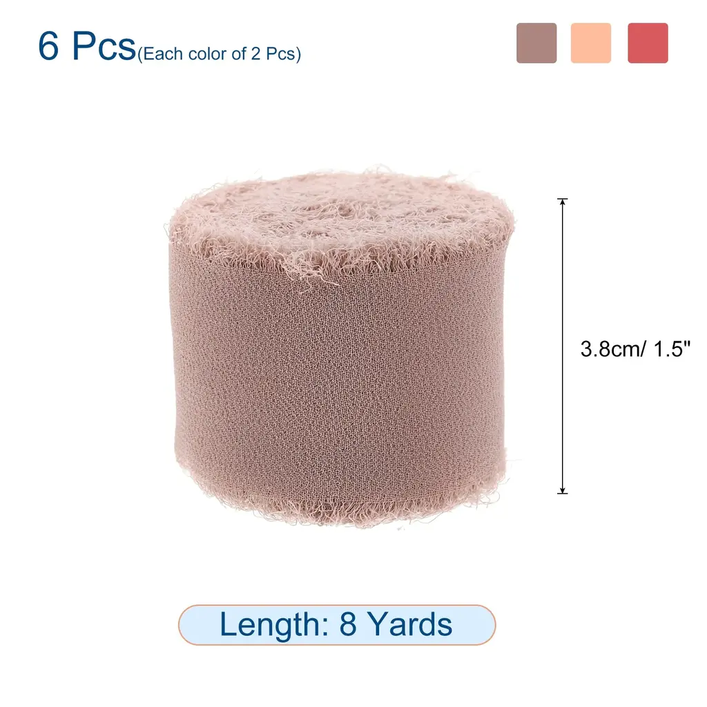 Chiffon Ribbon 1.5" X 8 Yard, Handmade Fringe Ribbon, Silk Ribbon For Wedding, Gift Wrapping, Pack Of 6 - Light Orange/dark Brown/brown