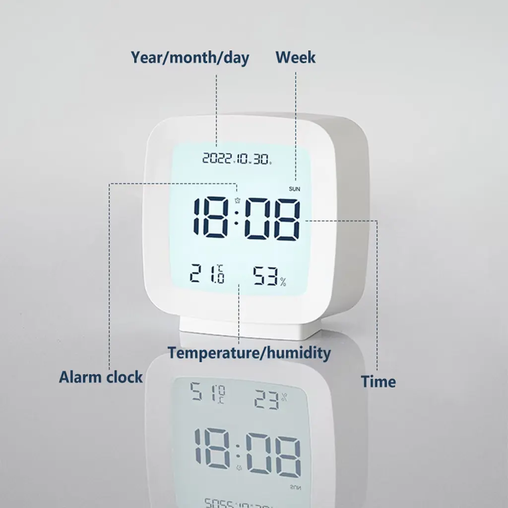 Children's Alarm Clock, Digital Alarm Clock With Time, Date, Temperature, Humidity, Used For Bedroom, Home, Office Decoration, White