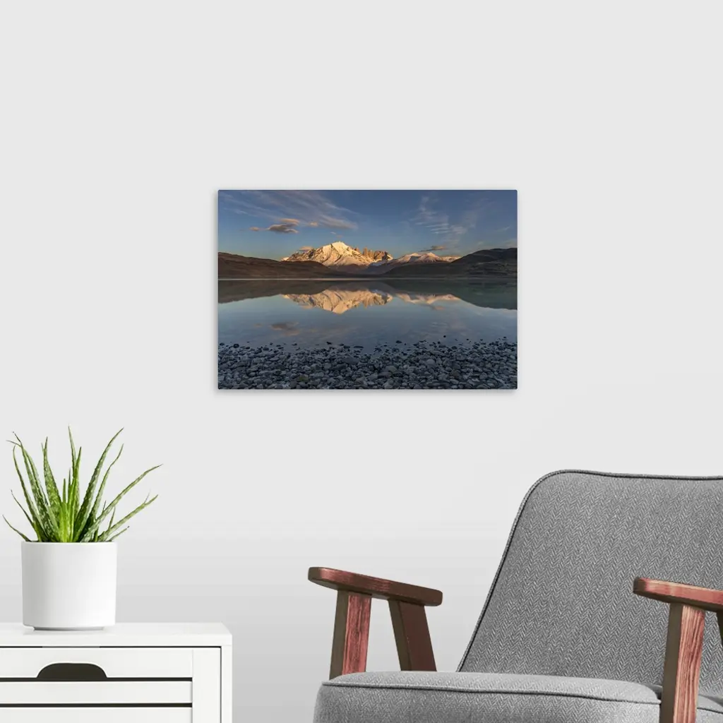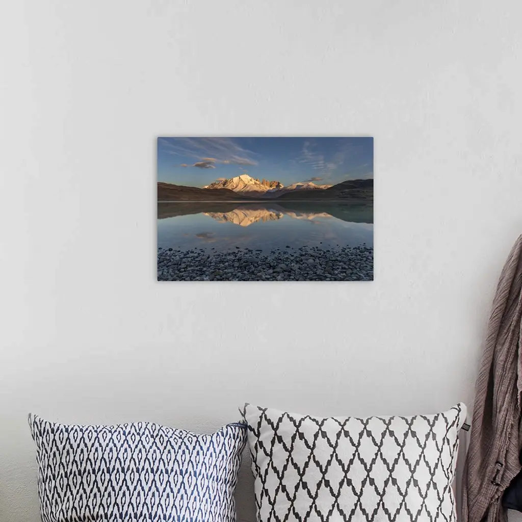 Chile, Patagonia, Torres del Paine National Park, Paine Massif, Cordillera Paine, Los Cuernos, Almirante Nieto, Los Torres, Escudo, Reflected in Lago Amarga
