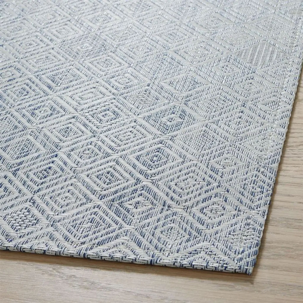 Traditional diamond twill is reimagined as a blue-toned mosaic in this beautiful mat that dresses up indoor or outdoor spaces. Signature bi-color yarns weave a complex lattice composed of uniquely woven diamonds. Each mat is woven of PVC yarns treated with TerraStrand, Chilewich's proprietary compound that's phthalate-free and contains renewable vegetable compounds that replace petroleum-based plasticizers used to soften yarns.View all Chilewich products