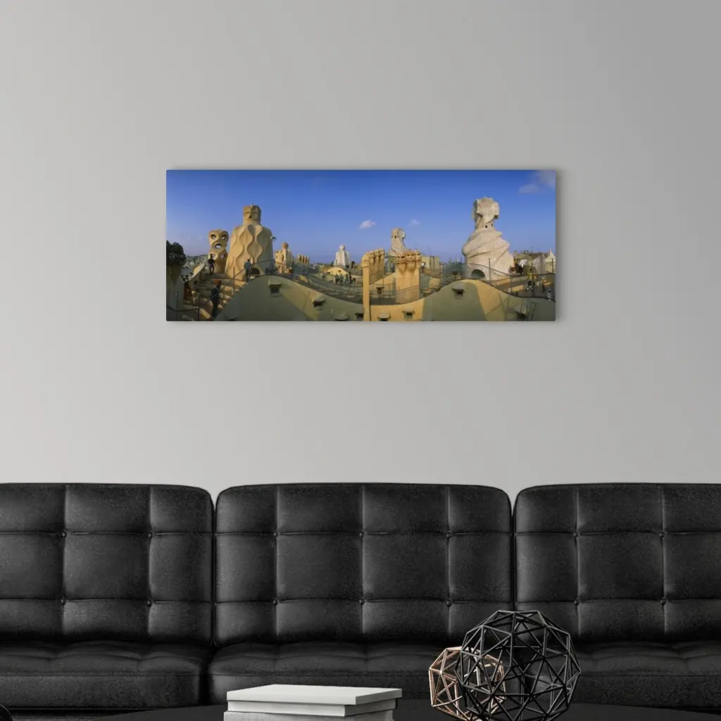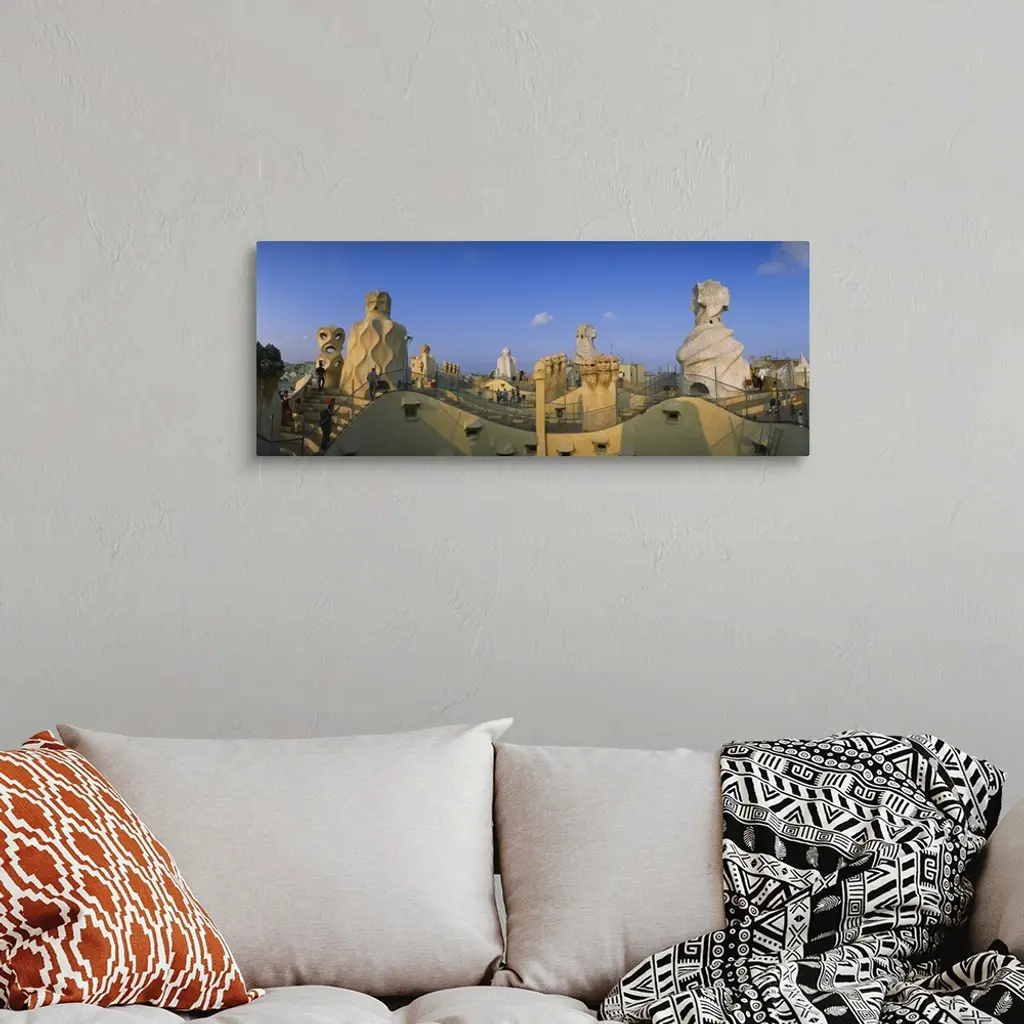 Chimneys on the roof of a building, Casa Mila, Barcelona, Catalonia, Spain wall art for home and office decor. Discover canvas art prints, photos, mural, big canvas art and framed wall art in GreatBigCanvas.com's varied collections.