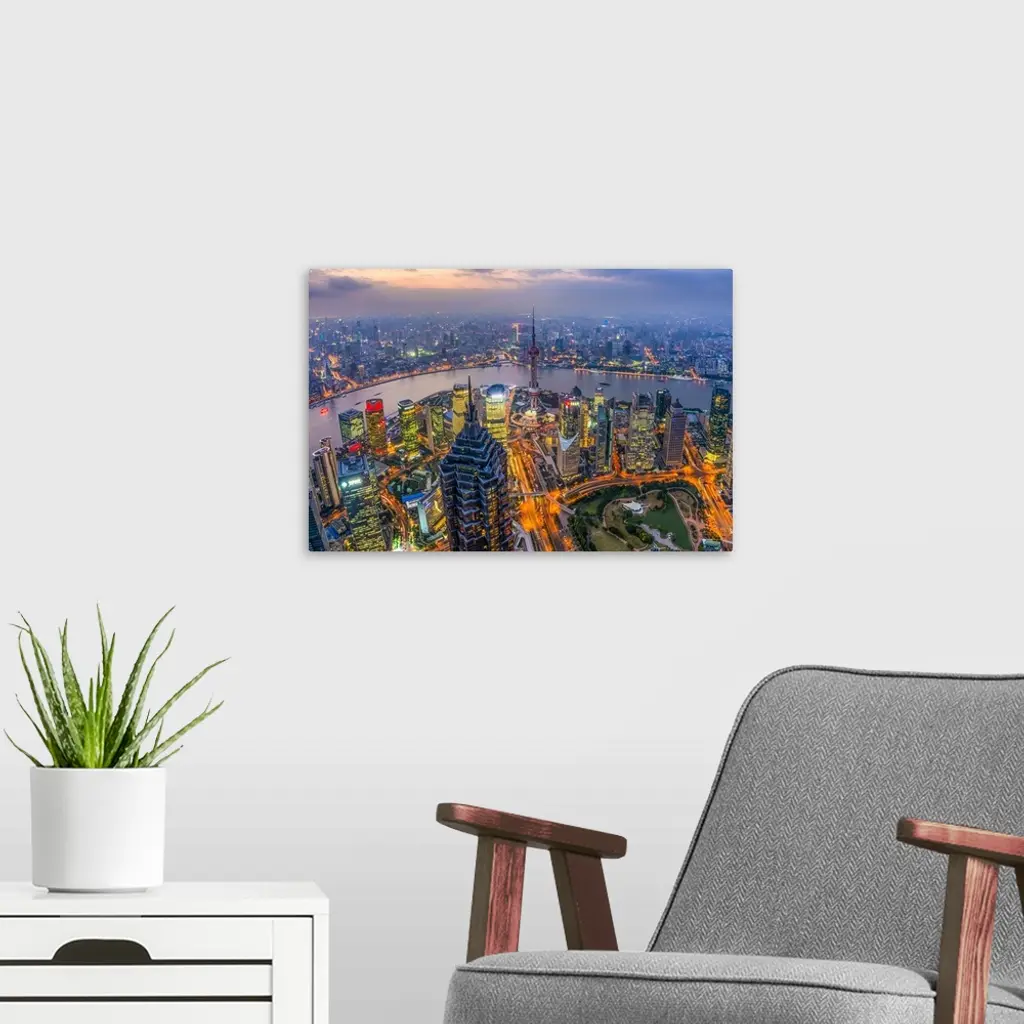 China, Shanghai, View Over Pudong Financial District, Huangpu River Beyond