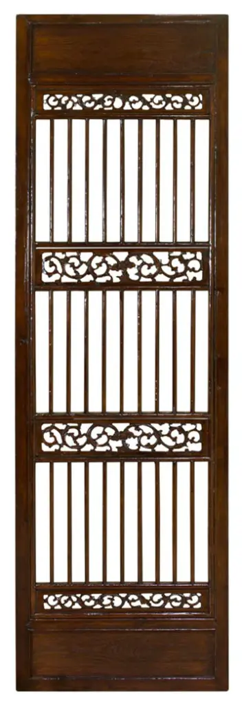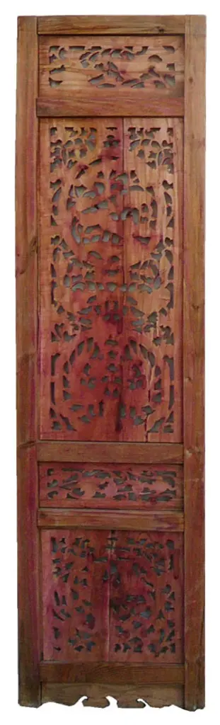 Dimensions: 19"W x 1.5"D x 62"H Material: Solid elmwood Hand carved elements Ready to hang The handcrafted process may result in slight color variation. No two are exactly alikeOnce used as a door panel in a rural village in Zhejiang Province, this vintage elmwood window shutter now serves as a beautiful ornament for any contemporary home. The window panel features intricate carvings of vine motifs. With a rich texture and vintage look, this door panel will no doubt supply its distinctive charm, whatever surface it decorates.This item will be shipped from Westmont, IL 60559 U.S.A
