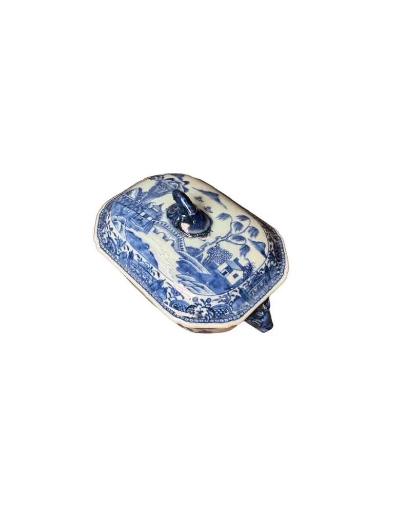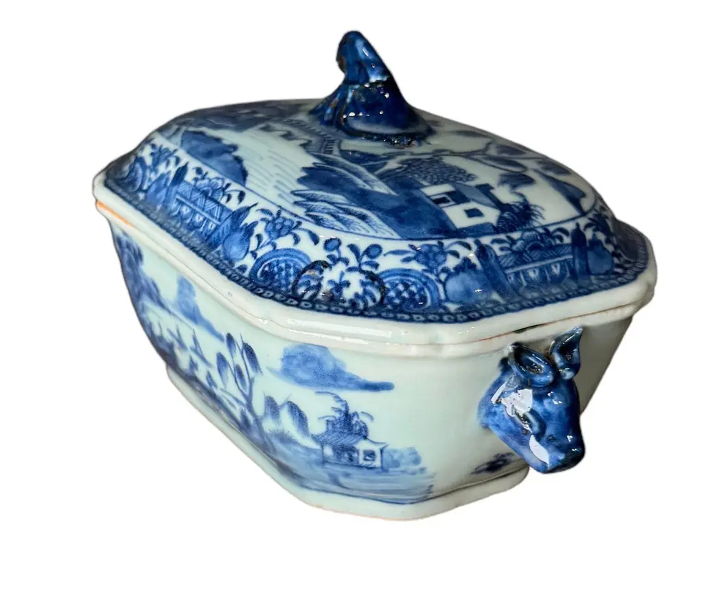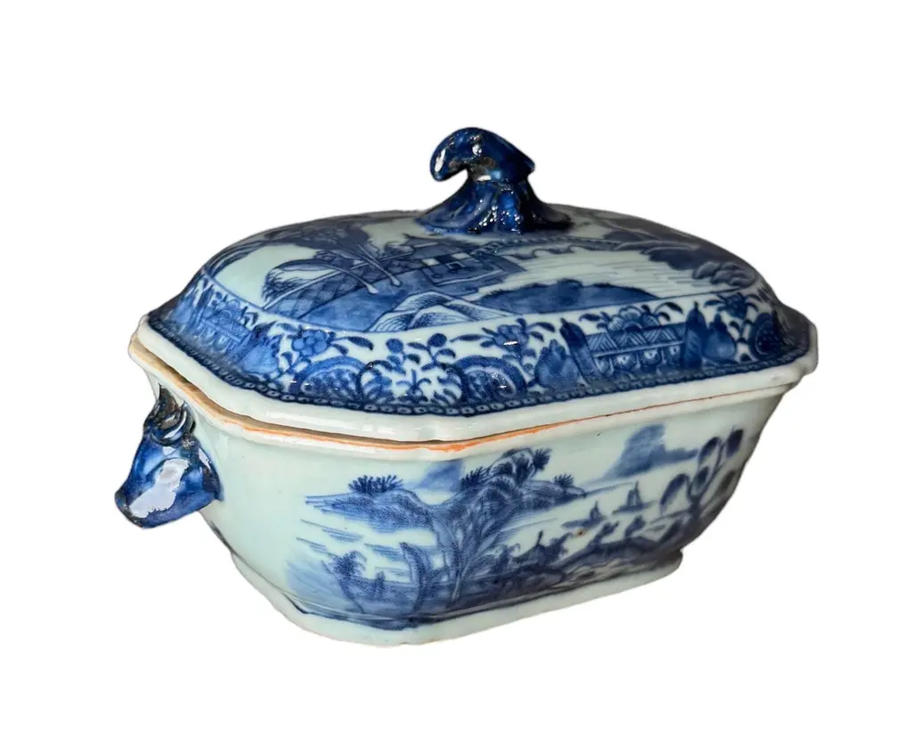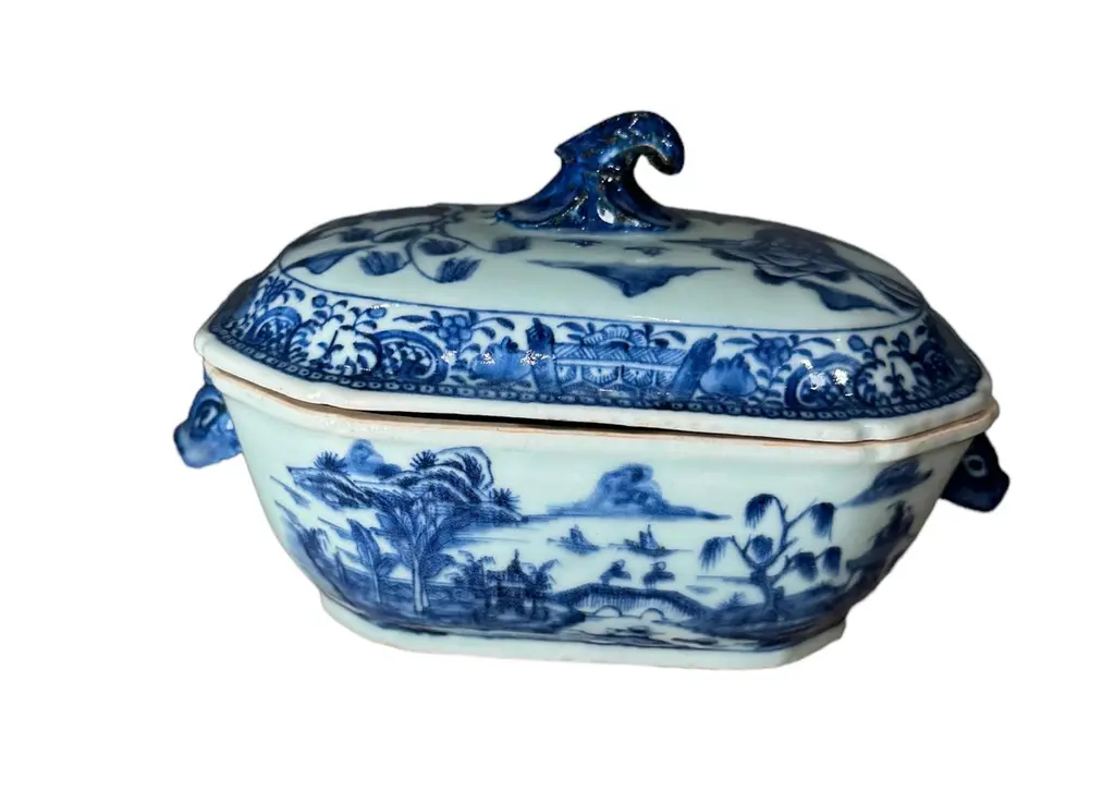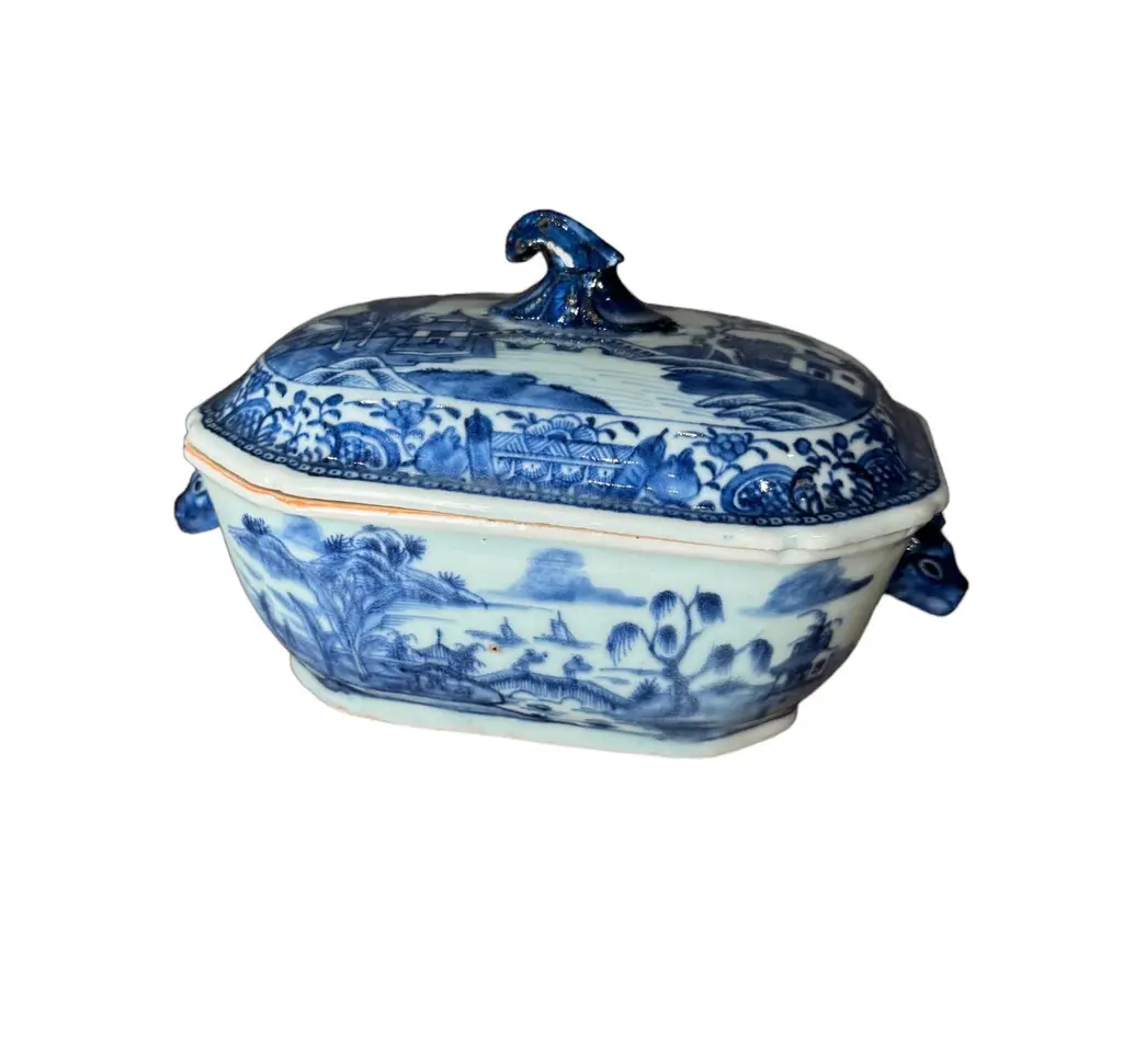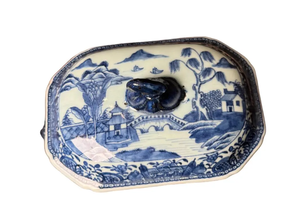 Chinese Export Blue & White Porcelain coved Tureen, 19th Century