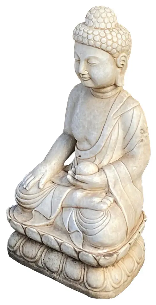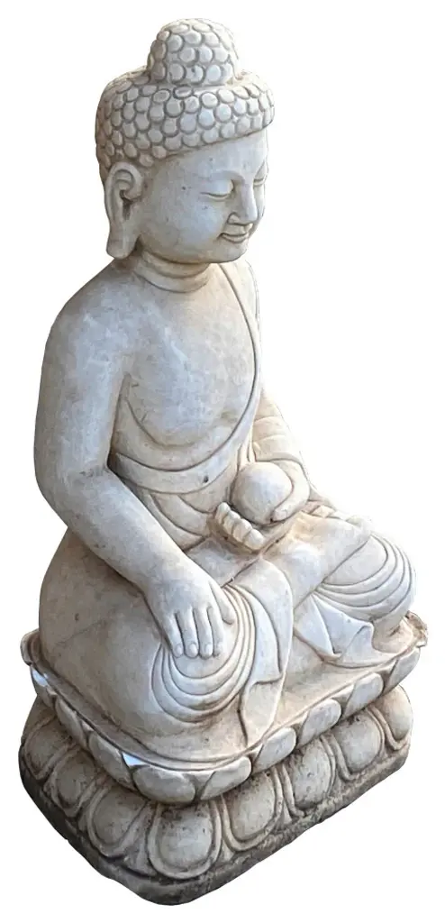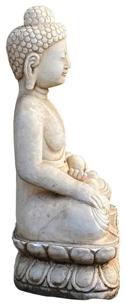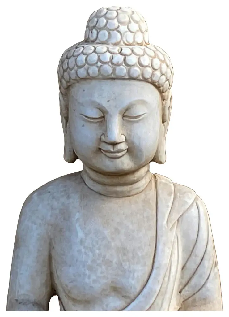 This is a Chinese Sitting Buddha Amitabha Shakyamuni carved from cream white color marble stone. It has a simple meditation posture and a clean body finish. It is a nice piece for Zen garden design or indoor home decoration. Dimensions: 13" x 9.5" x h25"Origin: ChinaMaterial: StoneCondition: Handmade, vintage distressed marks, stone chip marks, natural stone marksWork : Ship on a pallet, curbside drop offUS domestic continental buyer of 48 states pays $380 shipping charge for curbside delivery. Customer from Hawaii, Alaska, US Island, Florida Keywest, and Canada pays extra shipping cost. Insurance and handling charge are already included in the shipping cost. In-store pick-up is highly welcomed if you are in San Francisco Bay Area. (No charge) White-Glove (4-8 weeks transit) service can be arranged with additional cost - needs quotation based on the destination.For customer who is looking to buy multiple items. We can either combine several items on the same pallet or include small items inside the largest item as long as it fits in"When your shipment is delivered, carefully inspect the outside of the packaging before the delivery personnel leave. It is important to clearly indicate if there is any visible damage to the packaging or items on the delivery paperwork. Carriers usually do not honor concealed damage claims so it is crucial to clearly indicate any visible damage to the packaging or items on the delivery paperwork