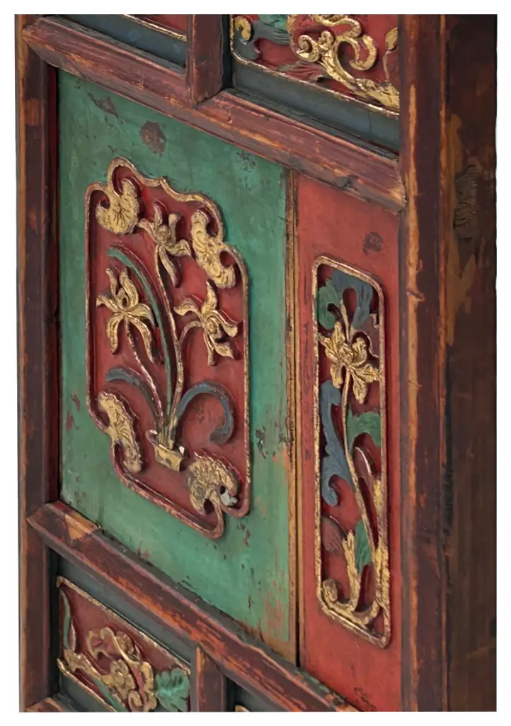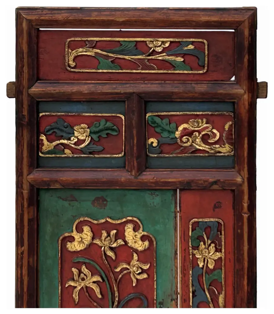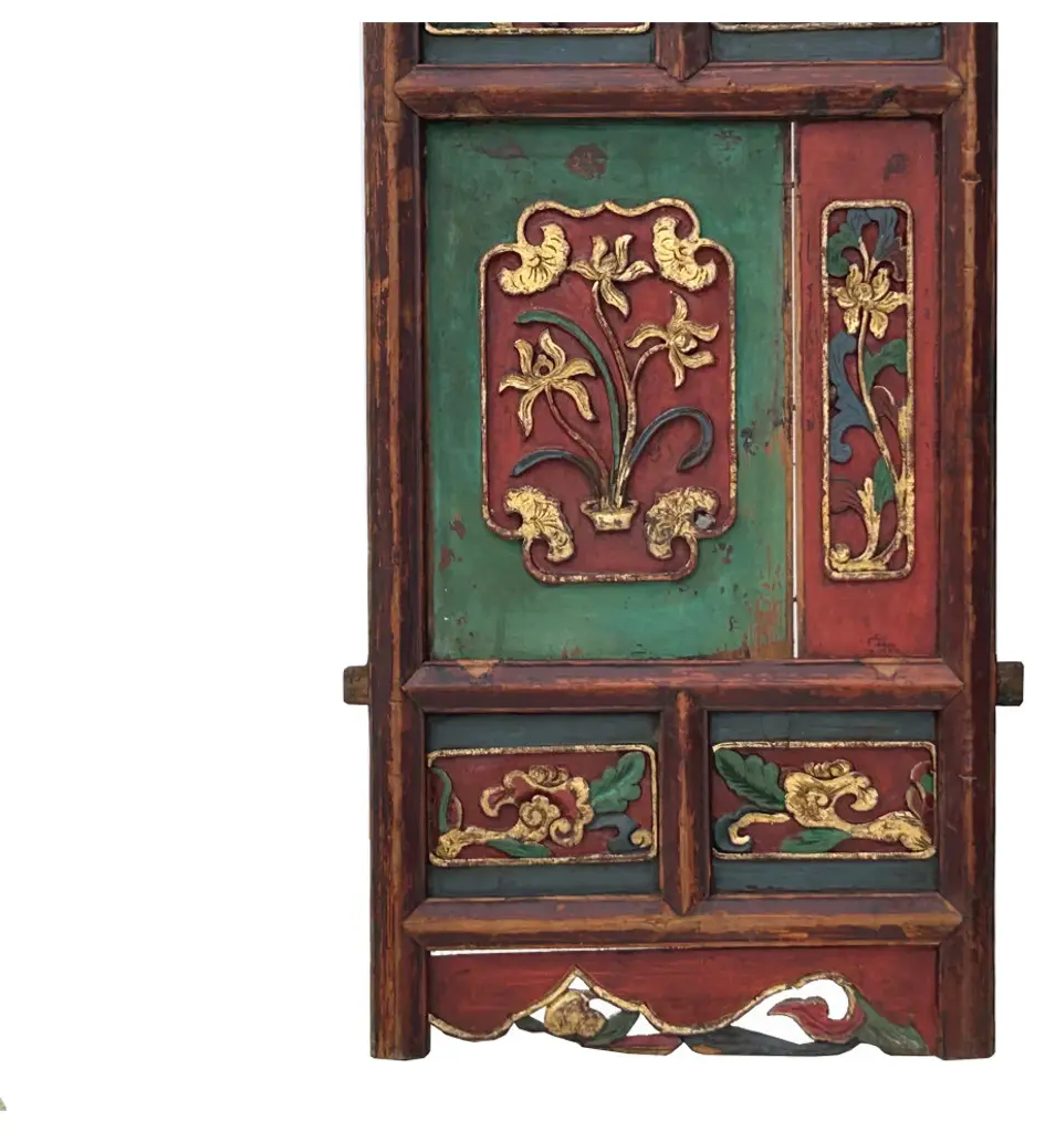 Introducing a masterpiece that beautifully captures the essence of Chinese Fujian style "“ the Vintage Restored Wood Golden Flower Ru-yi Carving Red Paint Wall Hanging Art. This extraordinary piece is a testament to the meticulous craftsmanship and cultural richness inherent in traditional Chinese design.Crafted in the distinctive Fujian style, this wall hanging art showcases a harmonious blend of restored wood, rich red paint, and intricate golden carvings depicting the auspicious Ru-yi motif and delicate flowers. The symbolism behind the Ru-yi, representing good fortune and prosperity, adds an extra layer of meaning to this artistic creation.The warm red paint serves as a backdrop, creating a captivating contrast that enhances the visual impact of the golden carvings. Each detail tells a story of artistic mastery, and the overall design exudes an air of timeless elegance.The careful restoration of the wood imparts a sense of authenticity to the piece, as if it has gracefully aged over the years, preserving the cultural heritage it embodies. This wall hanging art is more than just a decorative element; it is a tangible link to Chinese tradition and artistry.Transform your living space with the Chinese Fujian Style Vintage Restored Wood Golden Flower Ru-yi Carving Red Paint Wall Hanging Art "“ a symbol of prosperity and beauty that transcends time. Let the allure of this captivating piece bring a touch of cultural richness and artistic splendor to your home, creating an environment that resonates with history and traditionDimensions: w15.5" x h34" thickness 1.5"Origin: ChinaMaterial: Elm WoodCondition: Vintage restored, rustic marks, original hole or missing chipsUSA domestic continental buyers of 48 states pay $90 shipping (buyers of Hawaii, Alaska, US Islands, Florida Keywest, and Canada pay the extra shipping cost). Insurance and handling charges are already included in the shipping cost. In-store pick up is highly welcomed if you are in San Francisco Bay Area. (No charge)