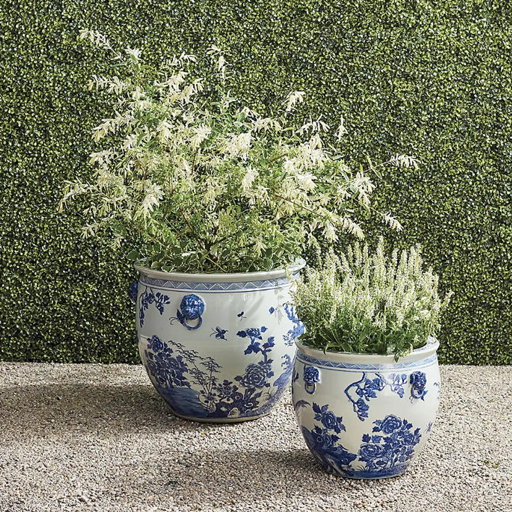 Chinoiserie Blue And White Porcelain Cachepot Set