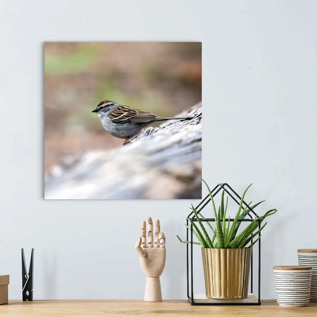 Square photo of a Chipping Sparrow on a branch in Yellowstone National Park.