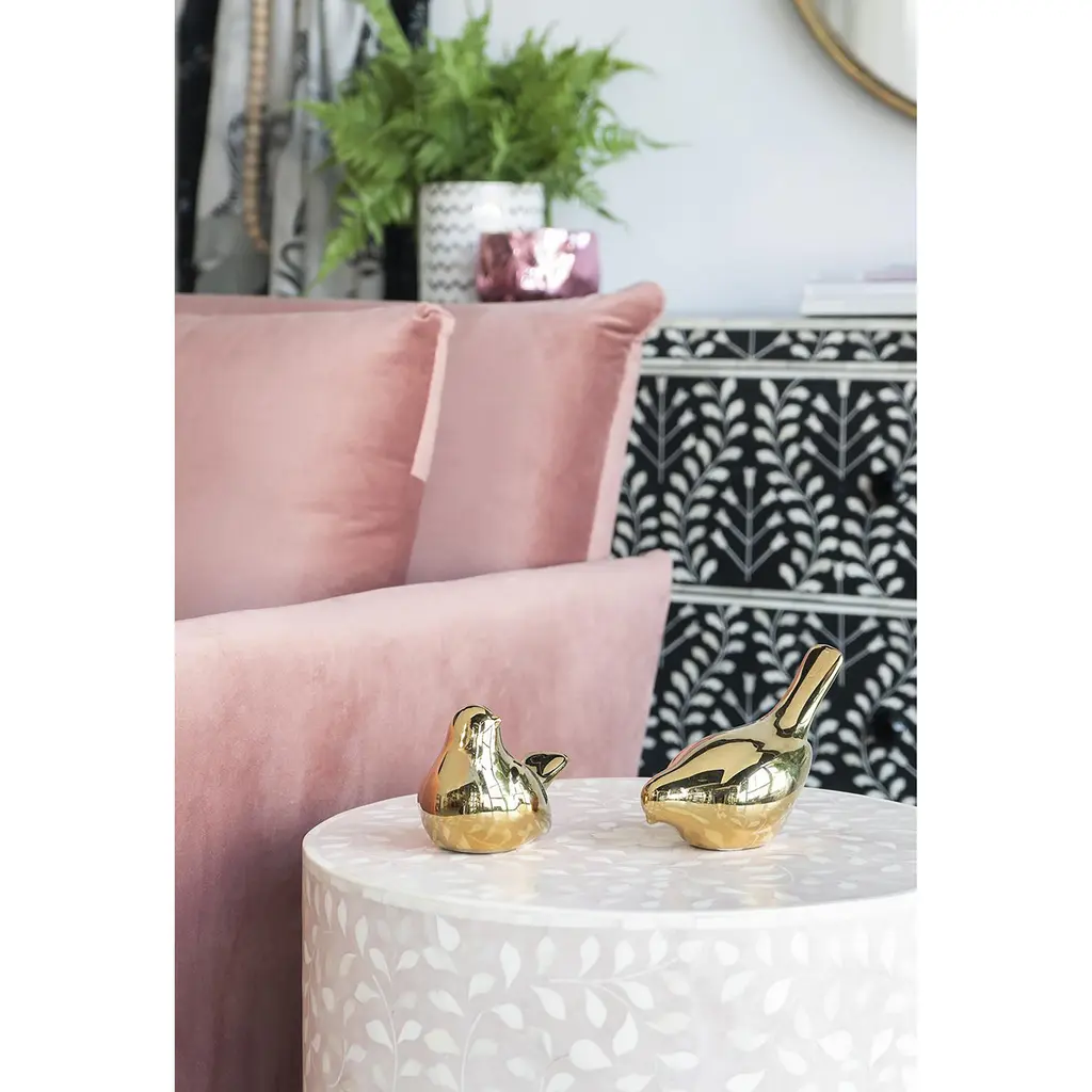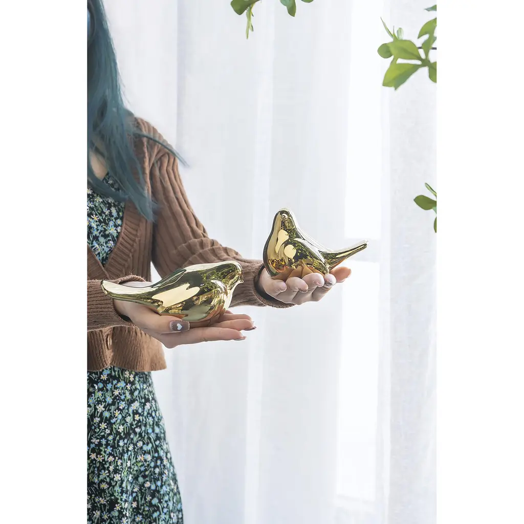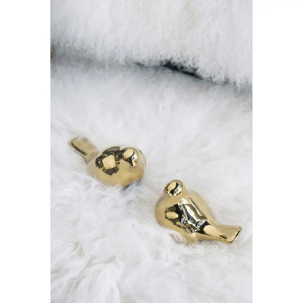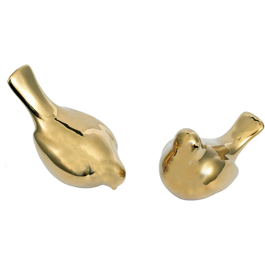 Elegant and charming, this set of Chirp Bird Accents shines with a sleek gold finish for luxurious appeal. These pieces beckon a second glance thanks to their exceptionally smooth ceramic forms. Each set includes two coordinated bird accents in their own distinct poses.