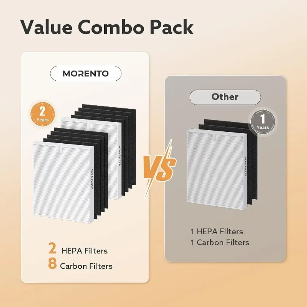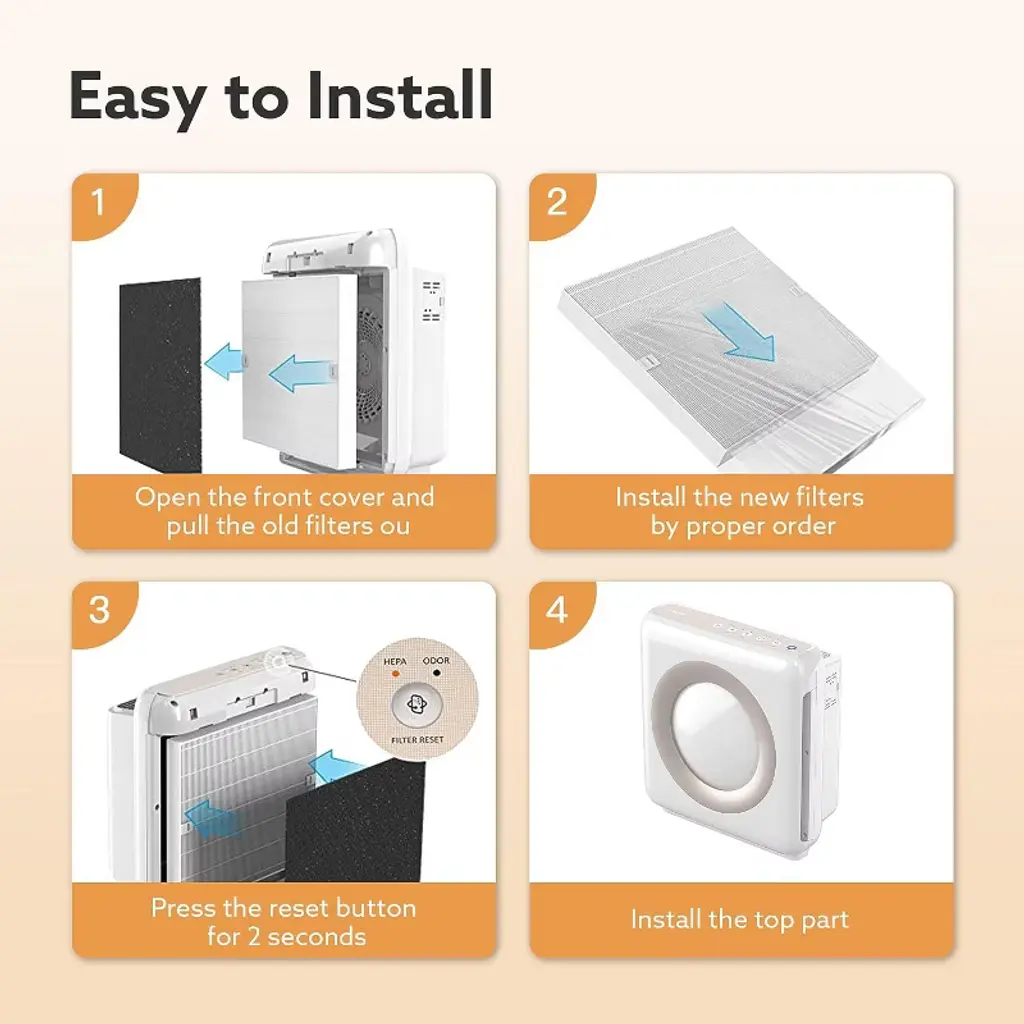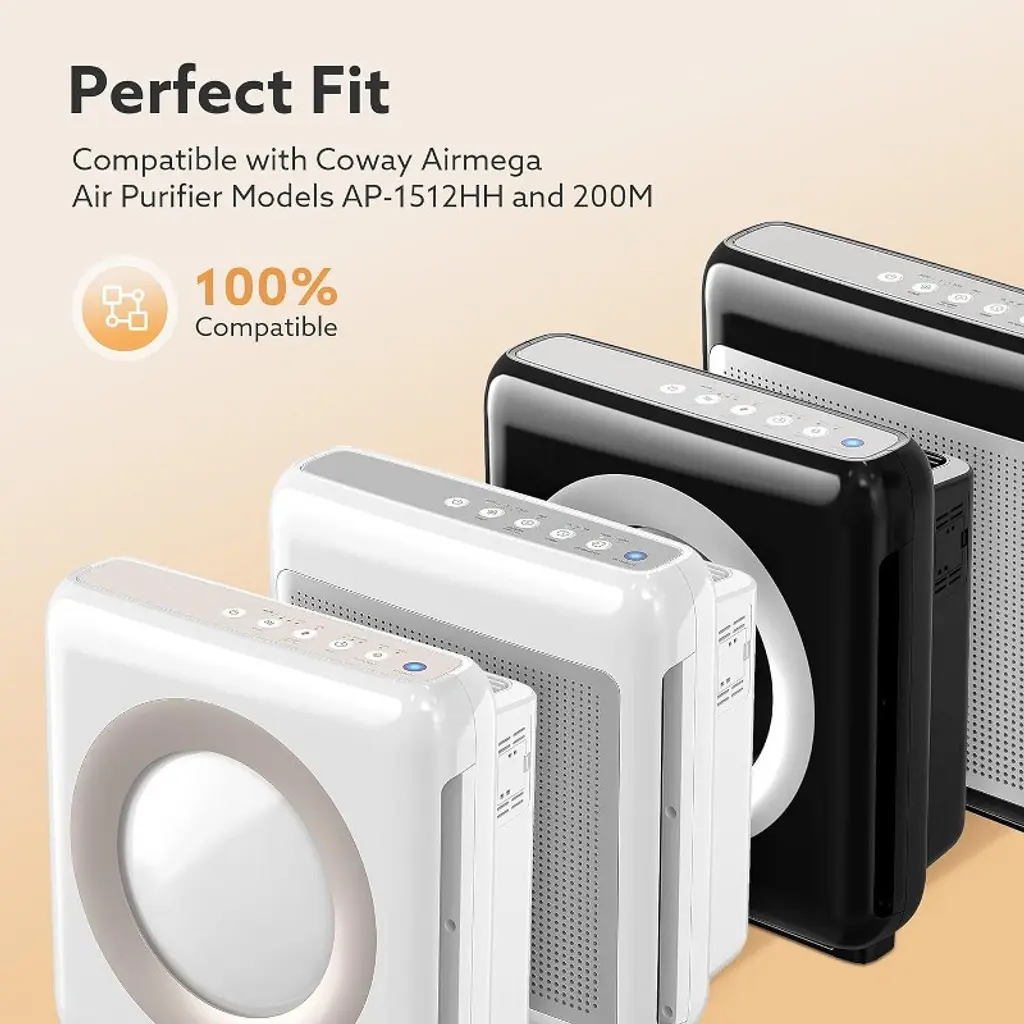 Keep your home or office air fresh and clean with this Coway filter replacement set, designed for use with Coway Airmega models AP1512HH and 200M. Each pack includes 2 True HEPA filters and 8 activated carbon filters, ensuring that you get both high-quality filtration and odor elimination. The True HEPA filter captures 99.97% of airborne particles as small as 0.3 microns, removing dust, pollen, and pet dander, while the carbon filters absorb household odors from cooking, pets, and smoking. ? Installation is a breeze�no tools required. Simply replace the filters to maintain the optimal performance of your Airmega purifier. For best results, replace the HEPA filter every 12 months and the carbon filters every 6 months. Keep your indoor air clean, fresh, and free from unwanted smells with this convenient 2-pack filter replacement. ? Note: Please check the size of your current filter to ensure compatibility before purchasing.