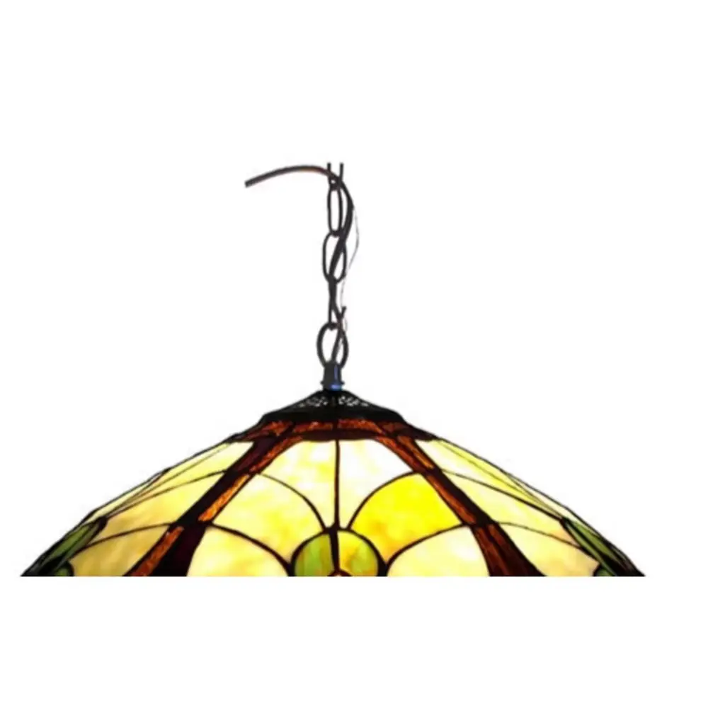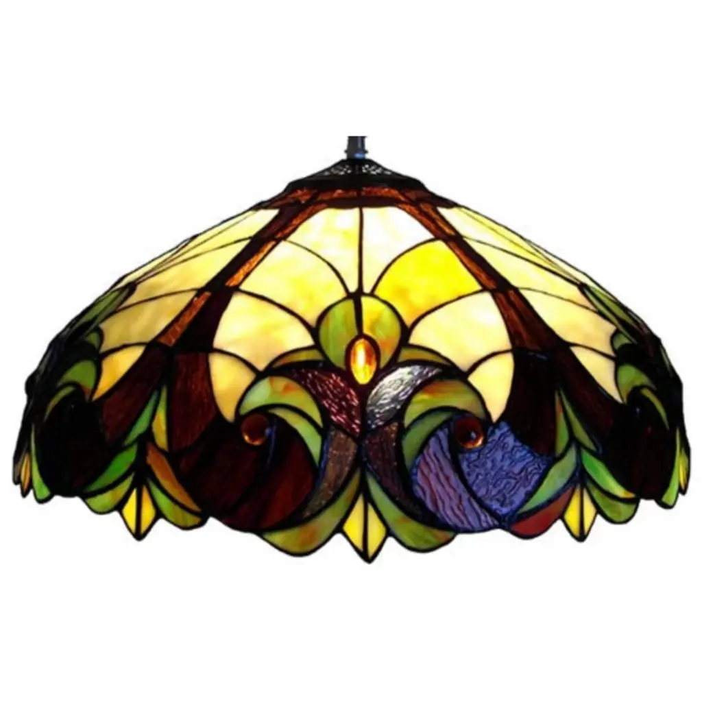 The Chloe Lighting Liaison Ceiling Pendant features an 18" handcrafted Tiffany‑style stained glass shade in elegant Victorian patterns with rich jewel tones. Paired with an antique bronze metal frame, this pendant offers a warm, ambient glow ideal for dining rooms, kitchens, or entryways. Crafted using traditional copper-foil techniques, the Liaison combines classic artistry with durable construction. Hardwired for clean installation, this pendant accommodates two E26 medium-base bulbs (max 60W each, not included) to create a timeless focal point in your space.