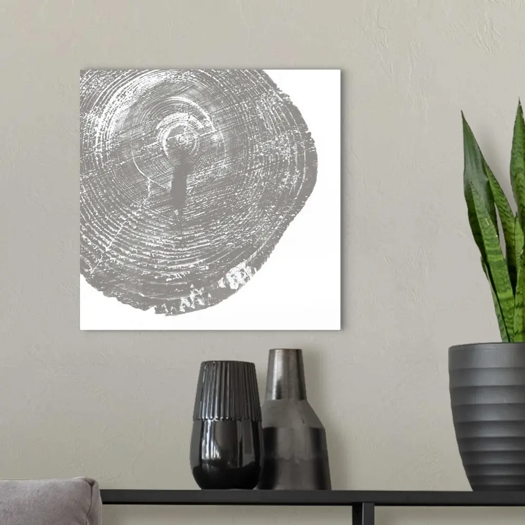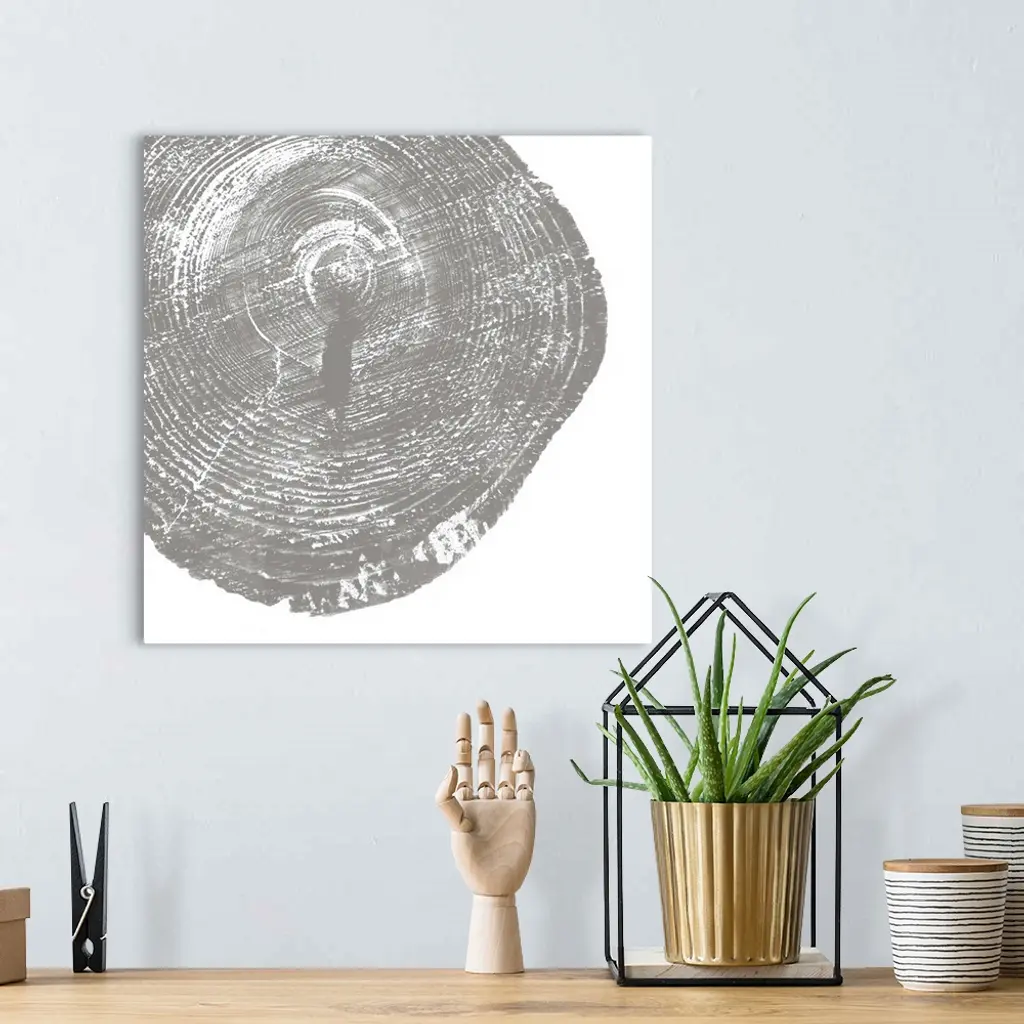 Cross-section of a tree trunk showing the rings in the wood in grey.
