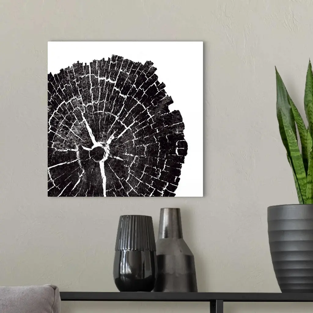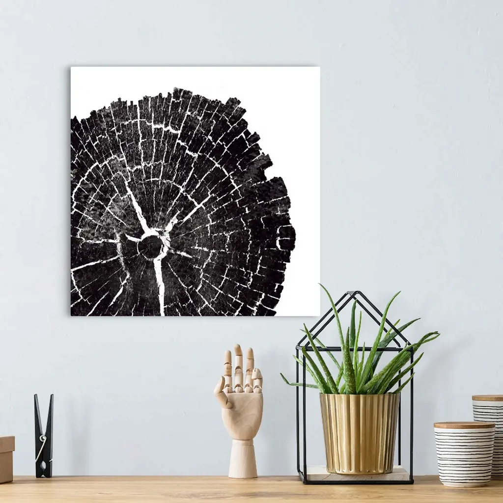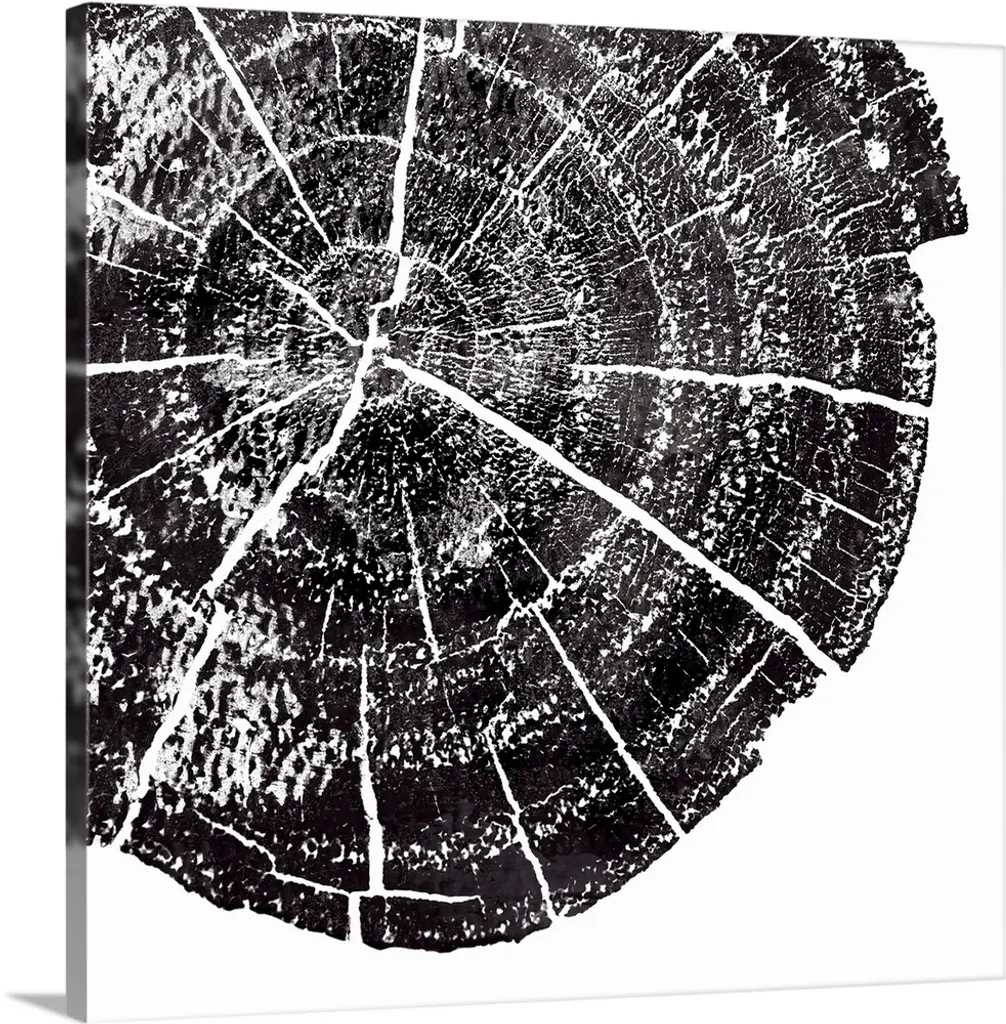 Cross-section of a tree trunk showing the rings in the wood in black.