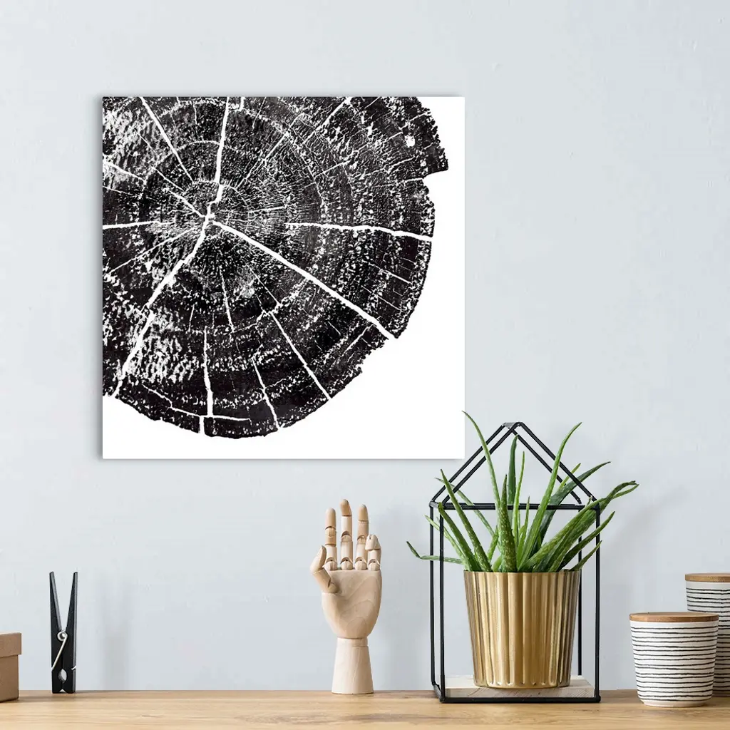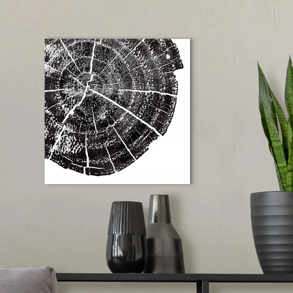 Cross-section of a tree trunk showing the rings in the wood in black.