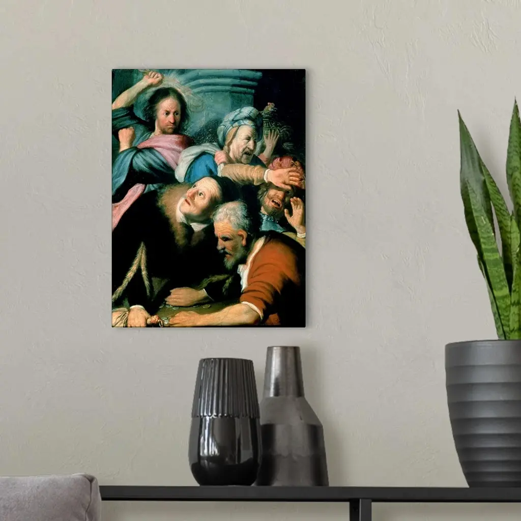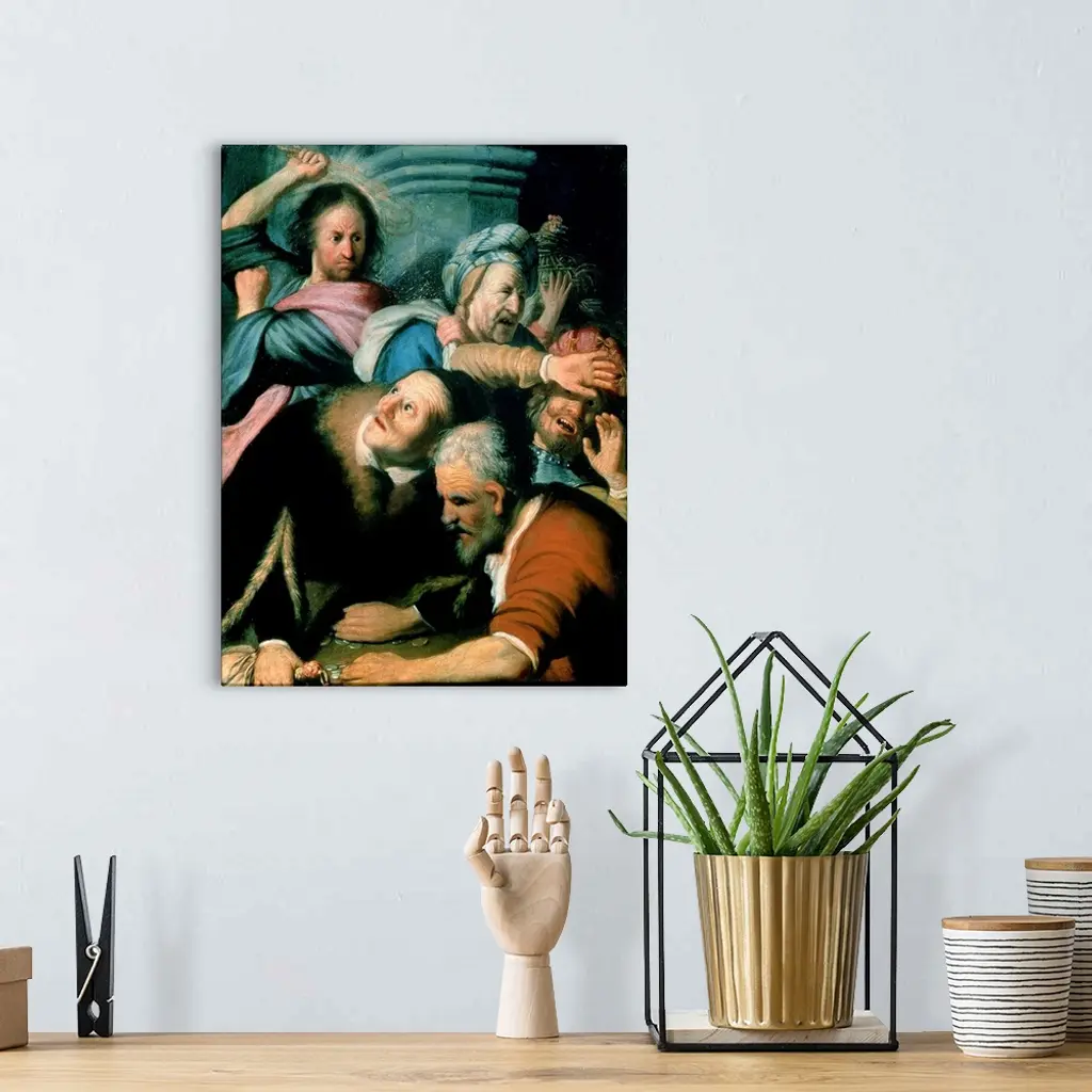 BAL106330 Christ Driving the Moneychangers from the Temple, 1626 (oil on canvas) by Rembrandt Harmensz. van Rijn (1606-69); 43x33 cm; Pushkin Museum, Moscow, Russia; Dutch, out of copyright