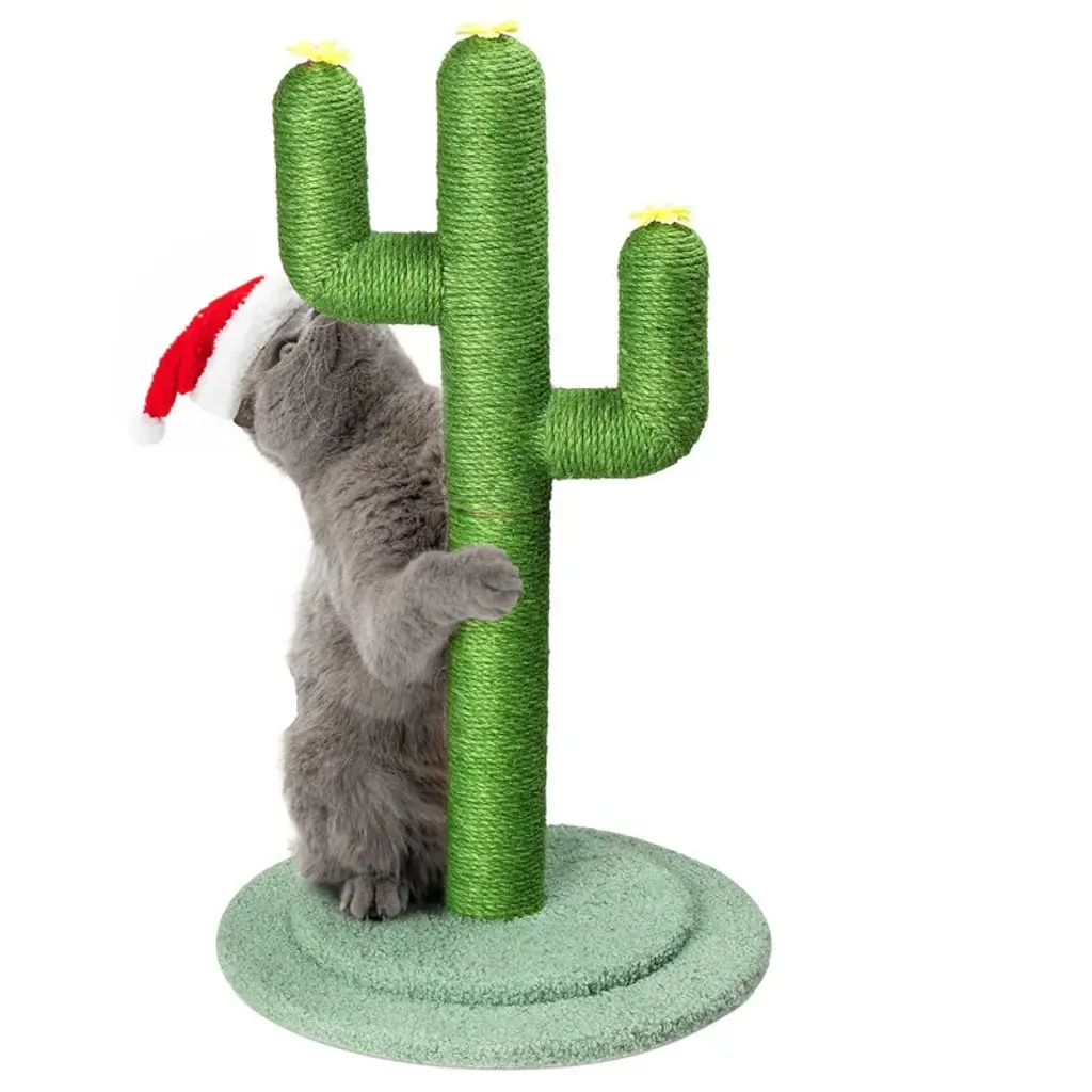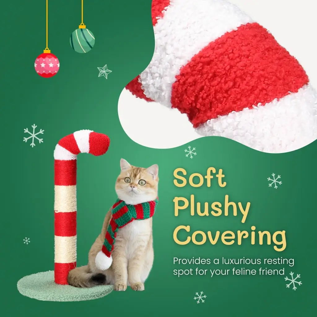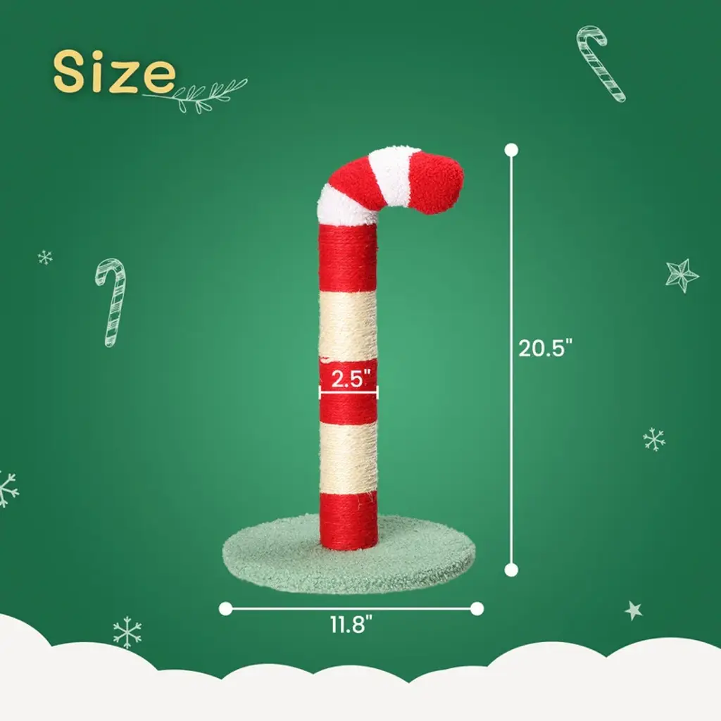 The Cat Scratching Post is made of natural sisal ropes and soft granular fabric, which not only help grind off the cat's claws but protect your furniture from damage.The Christmas candy cane-like appearance easily attracts cats' attention and stimulates their curiosity to play and climb on their own.
