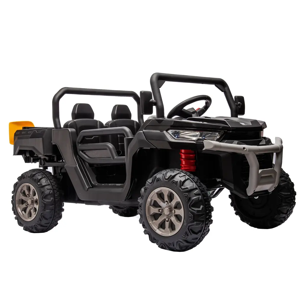 Product Overview: The 24V Ride-On Dump Truck for kids aged 3-8 offers an exciting and realistic construction vehicle experience. With a working dump bed, shovel, and openable doors, this truck lets kids explore imaginative play. The two 200W motors ensure a smooth ride, and the parental remote control allows for extra safety. LED headlights and built-in music features add fun to every ride, while the non-slip tires and suspension provide stability on various terrains, making this ride-on perfect for both indoor and outdoor adventures.Product Features:Specifications:Weight & Dimensions:Best For: Perfect for outdoor fun in backyards, parks, or driveways, this dump truck lets kids carry toys, sand, or snacks for exciting adventures.Notes: Always supervise kids during play and ensure the battery is fully charged before use for optimal performance.