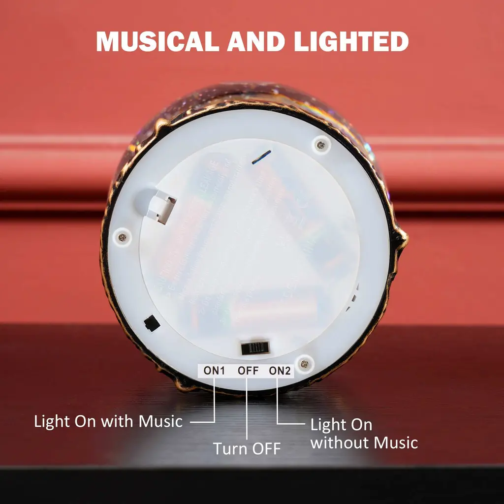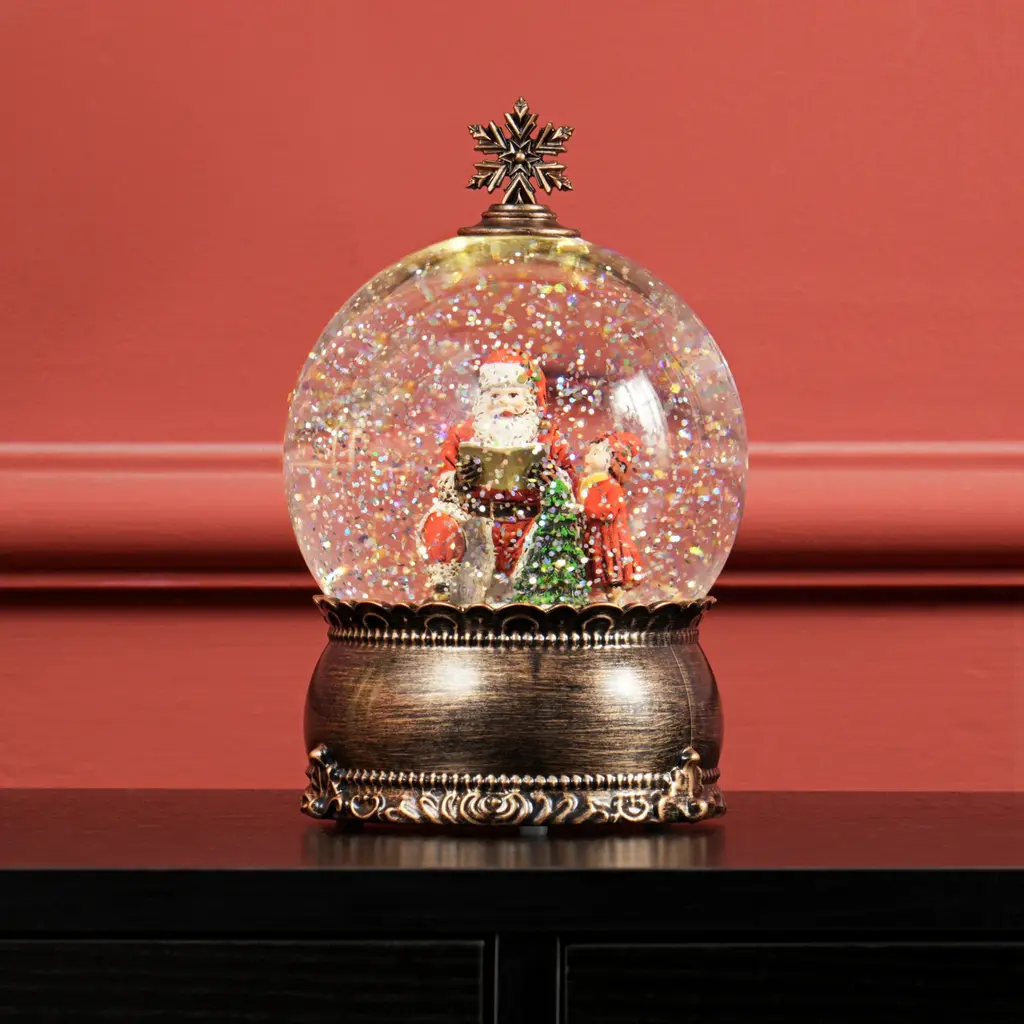 Christmas Snow Globe with Light, Musical Snow Globe with Swirling Glitter, Battery Operated Christmas Decoration for Holiday Party or Gift, Bronze.Features:Specification: