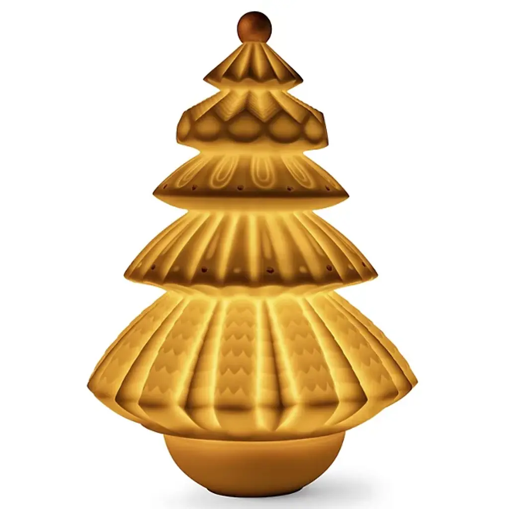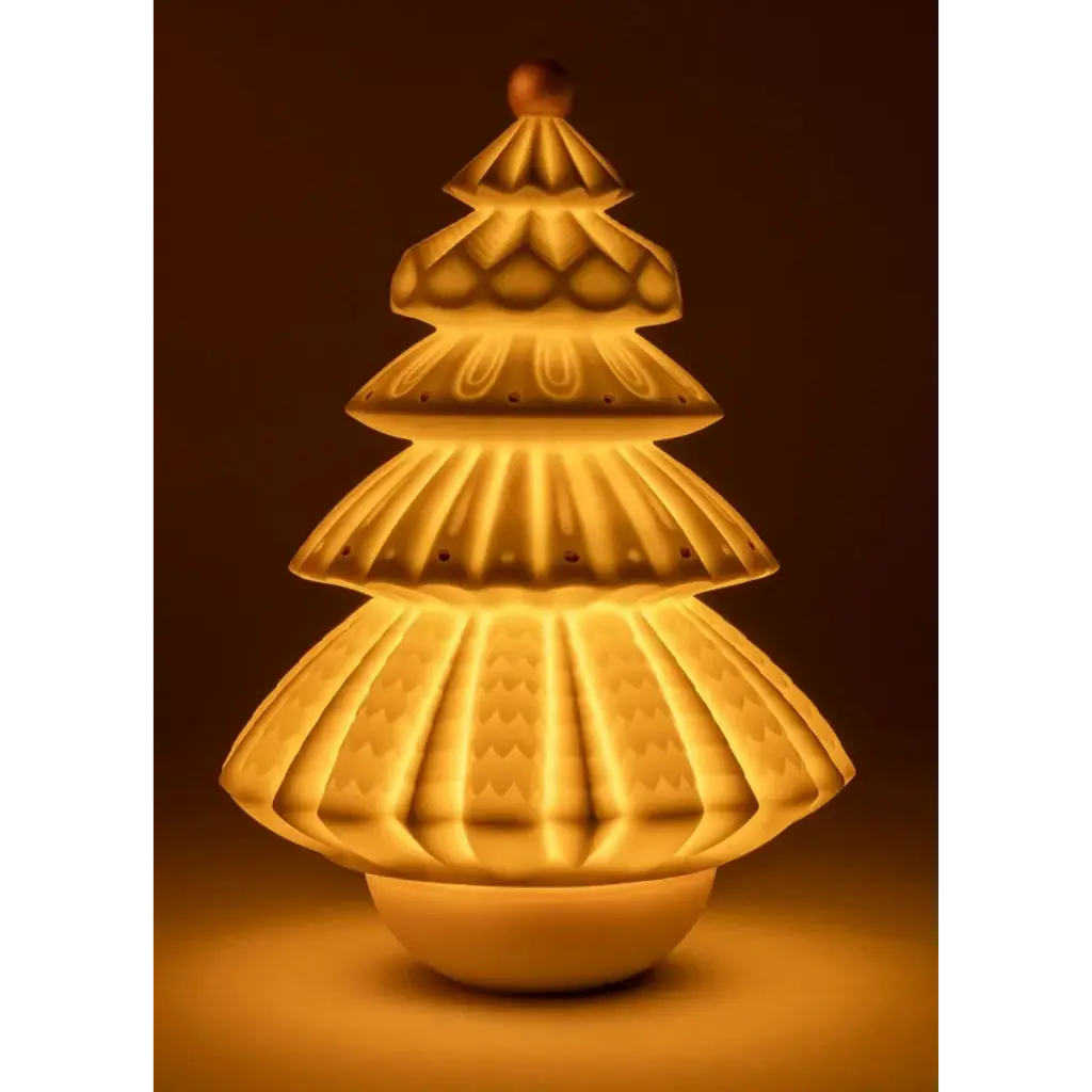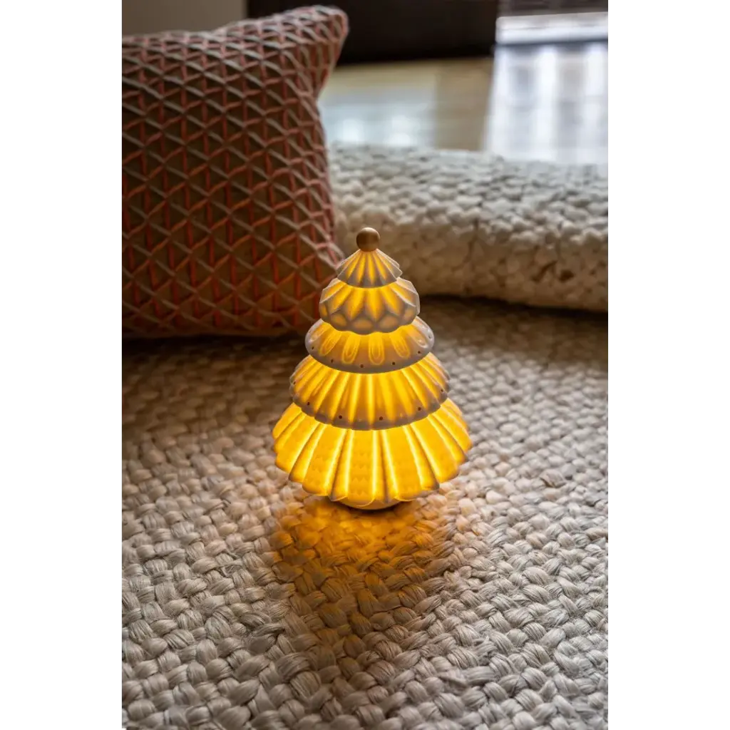 This cordless lamp is inspired by the spruce tree, one of the most universal symbols of Christmas celebrations. Made in matte porcelain, it is decorated with delicate etchings and touches of golden luster. When the lamp is turned on, all the patterns are brought to light, bathed in the warm lighting that filters the porcelain. Cordless LED lamp An iconic Spanish brand, Lladro is a world leader in the creation of porcelain art. Started by brothers Juan, Jose and Vicente Lladro in 1953, the ceramic figurines were initially inspired by the works of great European manufacturers like Meissen and Sevres. Over time, a unique style was forged, consisting of elongated lines, a revolutionary single-firing method, and soft pastel tones.