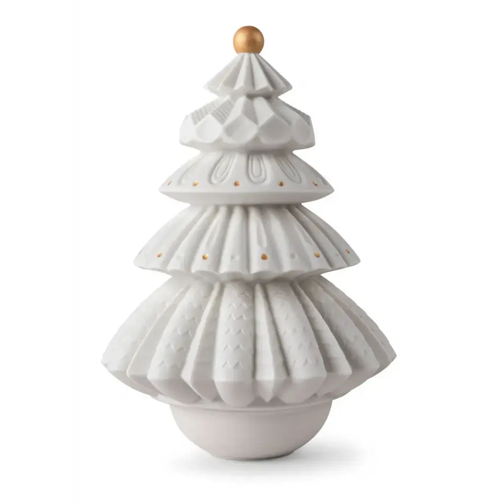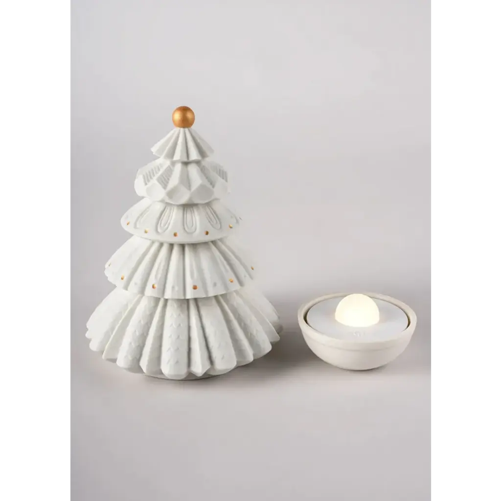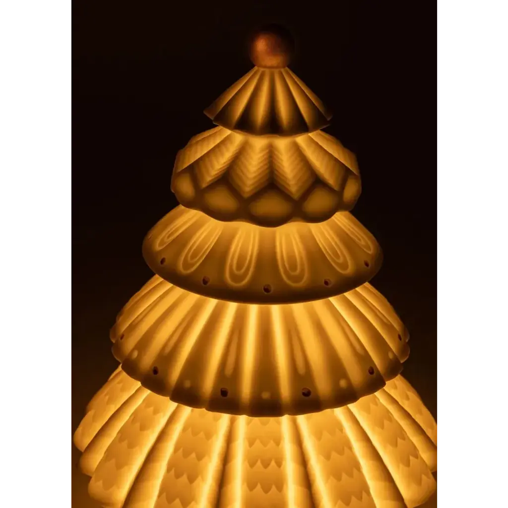 This cordless lamp is inspired by the spruce tree, one of the most universal symbols of Christmas celebrations. Made in matte porcelain, it is decorated with delicate etchings and touches of golden luster. When the lamp is turned on, all the patterns are brought to light, bathed in the warm lighting that filters the porcelain. Cordless LED lamp An iconic Spanish brand, Lladro is a world leader in the creation of porcelain art. Started by brothers Juan, Jose and Vicente Lladro in 1953, the ceramic figurines were initially inspired by the works of great European manufacturers like Meissen and Sevres. Over time, a unique style was forged, consisting of elongated lines, a revolutionary single-firing method, and soft pastel tones.