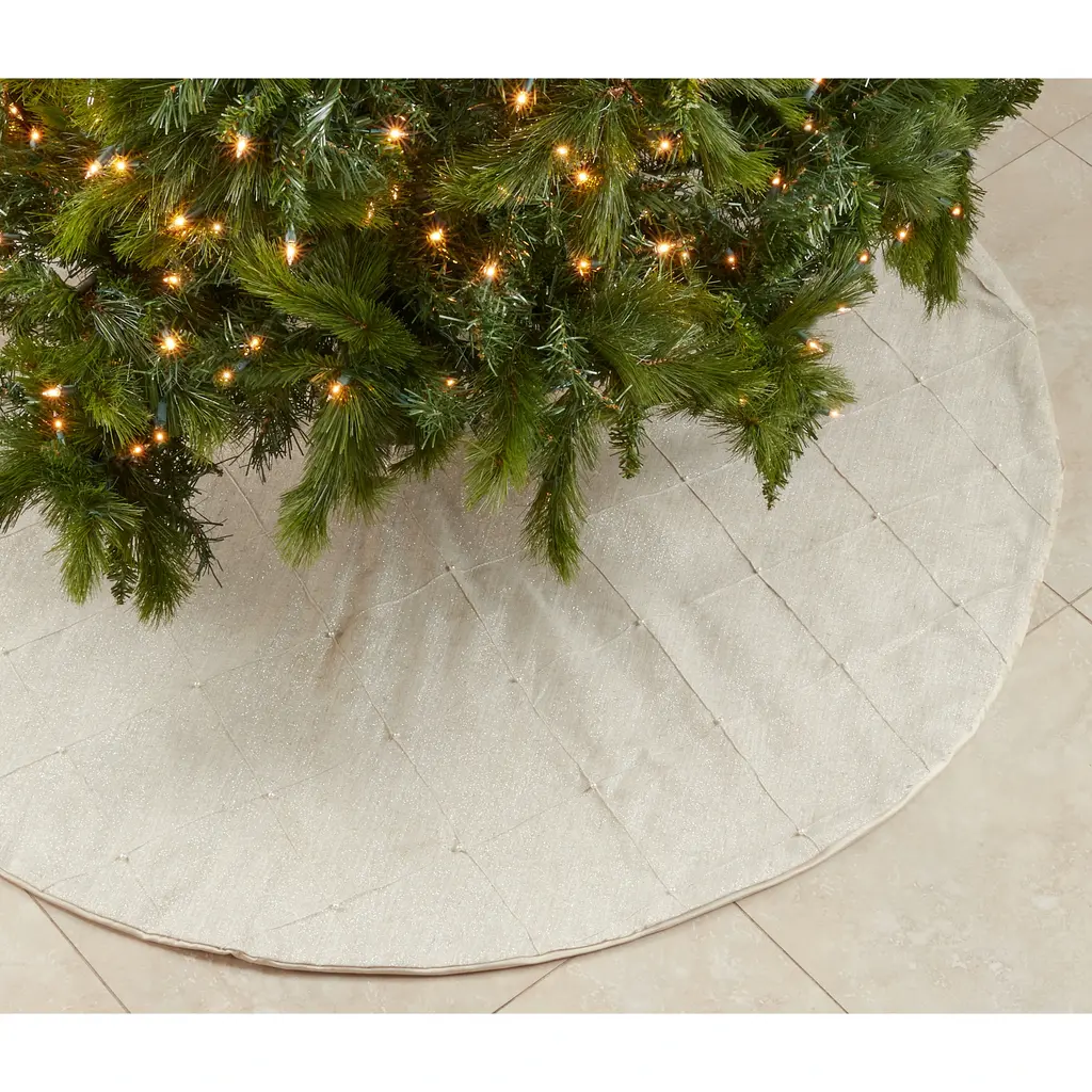 Finish up your Christmas Tree décor with this cute and festive Diamond Stitched Tree Skirt. It's a great way to protect your floors, but also to cover any aesthetically unpleasing tree stand. The diamond stitch design adds a bit of texture and dimension, while the neutral colors and tones make it easy to fit.Features: