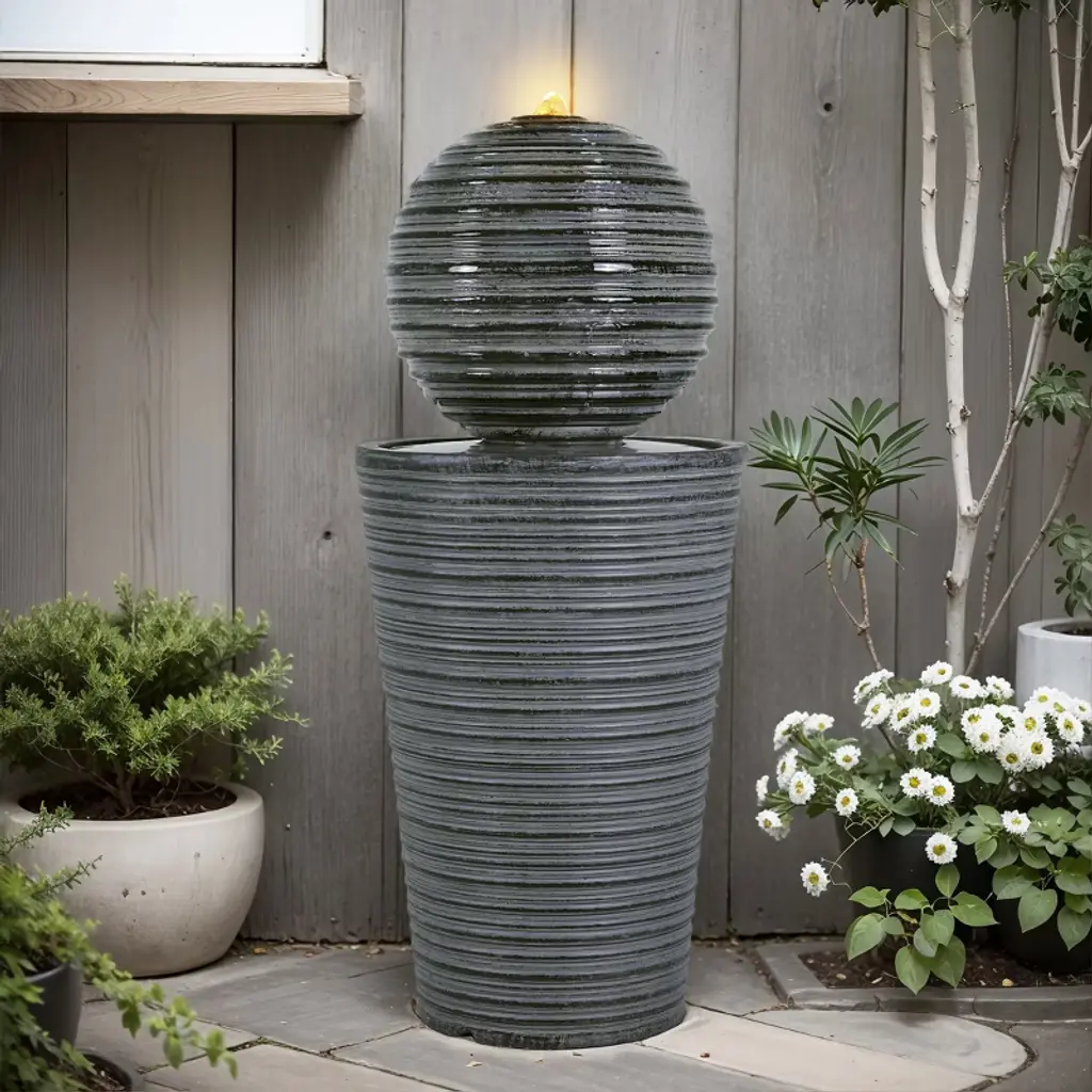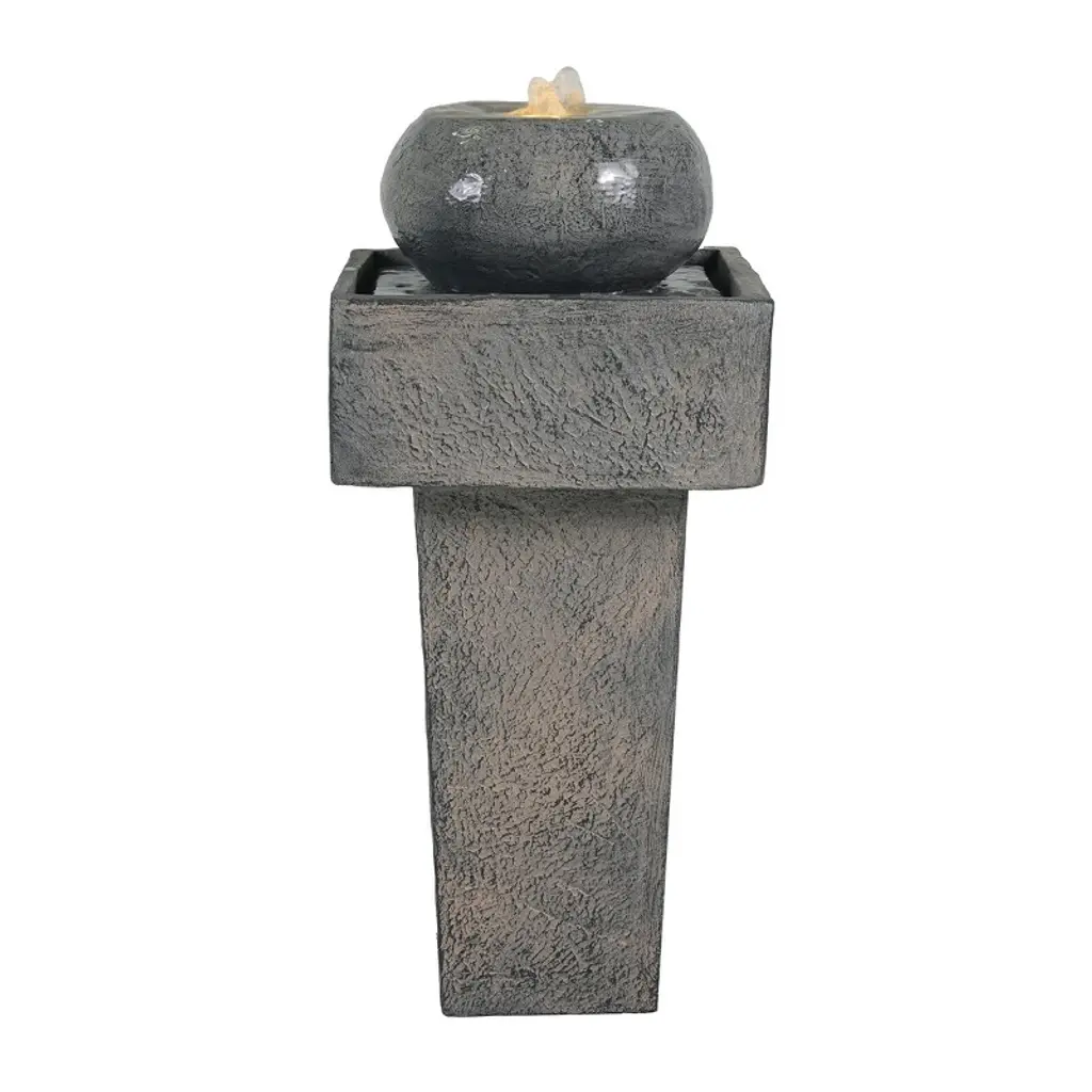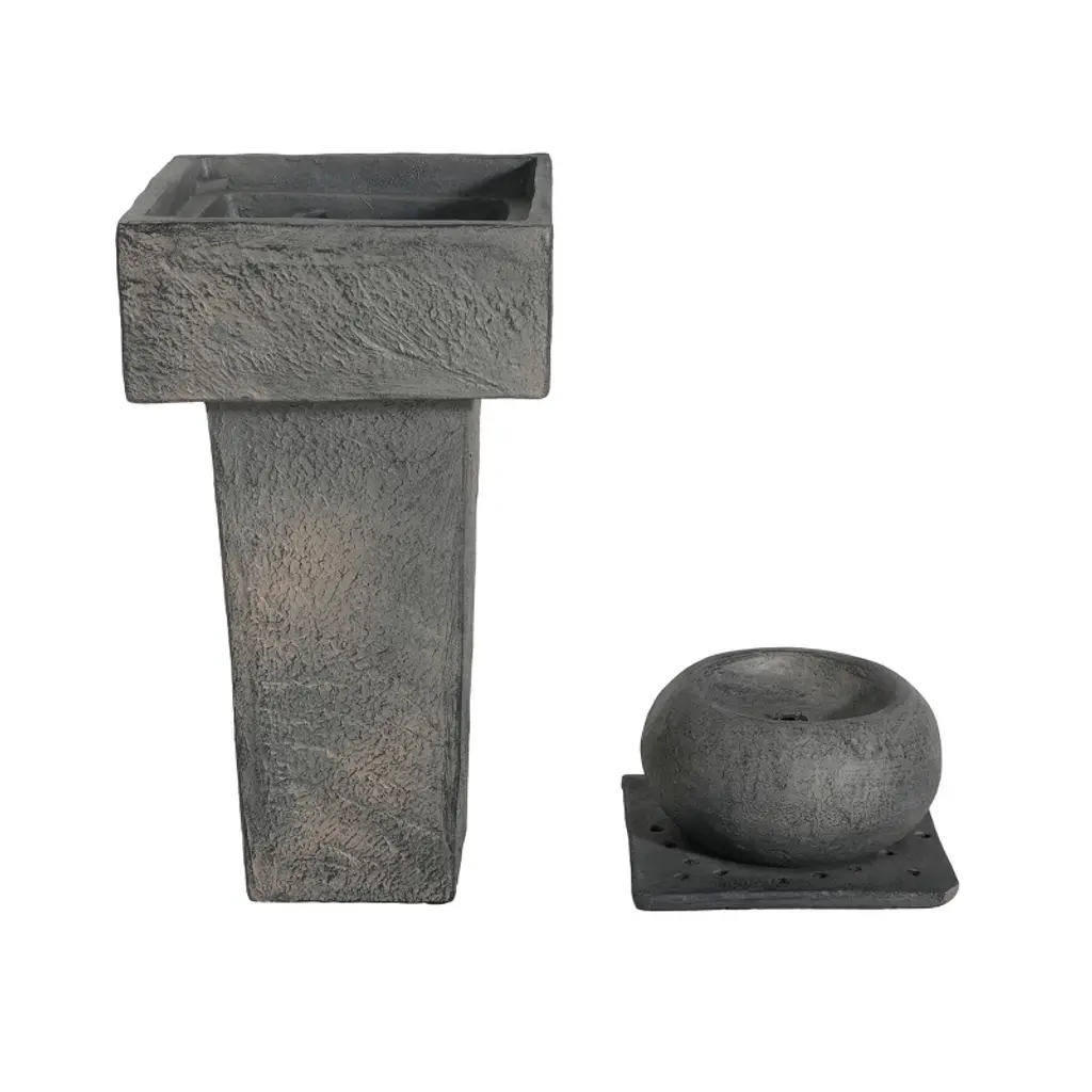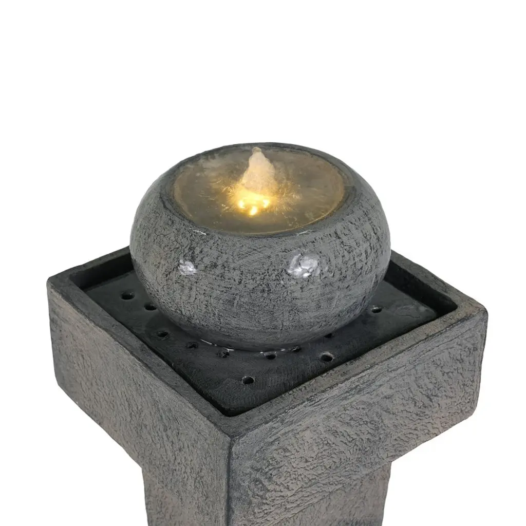 This modern outdoor fountain features a sleek columnar design with smooth lines that blend seamlessly into contemporary courtyards, patios, and gardens, adding sophistication to any space. Built-in LED lighting enhances the flowing water, creating sparkling effects that elevate ambiance both day and night. The adjustable water flow lets you customize the speed and intensity of the stream, delivering soothing sounds and a tranquil atmosphere. Crafted from durable concrete, the fountain offers a stable structure with excellent resistance, ensuring long-lasting performance and timeless outdoor elegance. Main Material: Concrete Assembly Required Dimensions: 11.81''D X 11.81''W X 25.59''H Water Capacity: 0.70 gallons Power Source: Plug-in Plug Type: Type A Voltage: 120 Volt