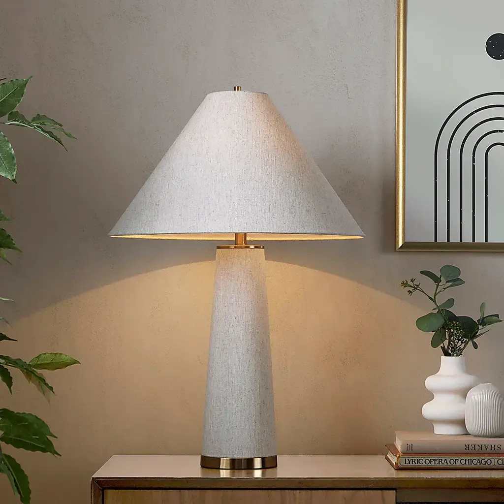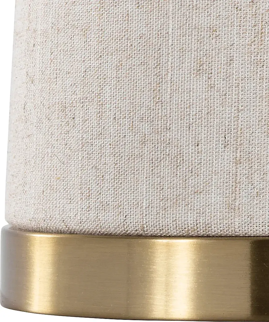 Elevate your decor with the Christy Grove Cream Lamp, Set of 2, a stunning piece that seamlessly blends natural linen upholstery and gleaming brass metal accents. Crafted with meticulous attention to detail, this lamp features a tapered, conical shape that exudes a refined and elegant aesthetic. Partial assembly may be required.