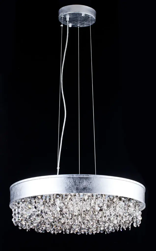 Chrome silver leaf round frame with smoke and clear mixed crystalsColor: SilverSize: 23"D 6.3"HMaterials: CrystalLighting Specs:Commercial Use: YesUL Certified: YesETL Certification: NoLight bulbs includedNumber of Bulbs: 16Bulb Type: LEDMax Wattage: 6