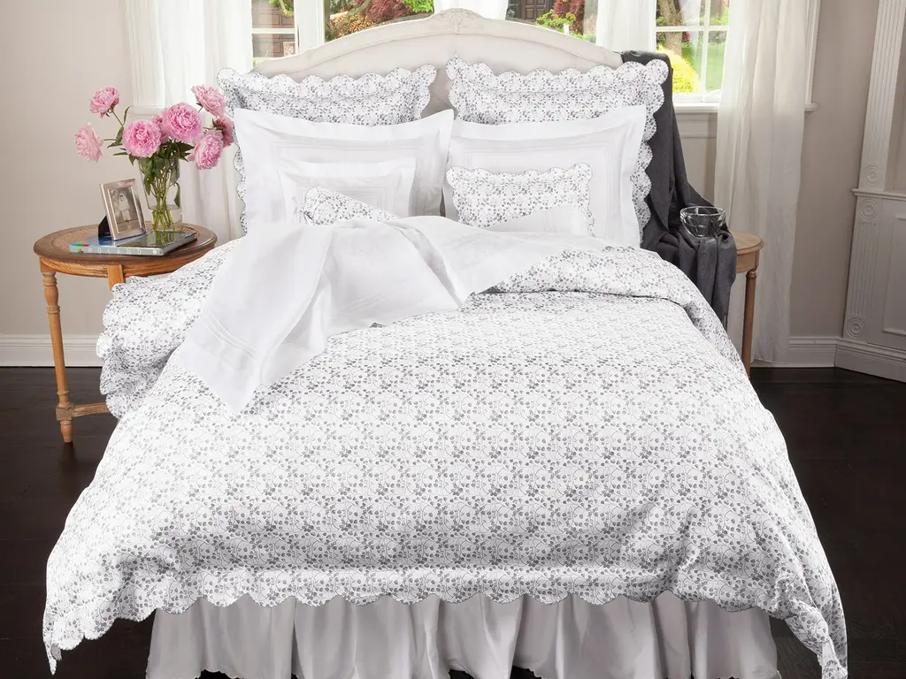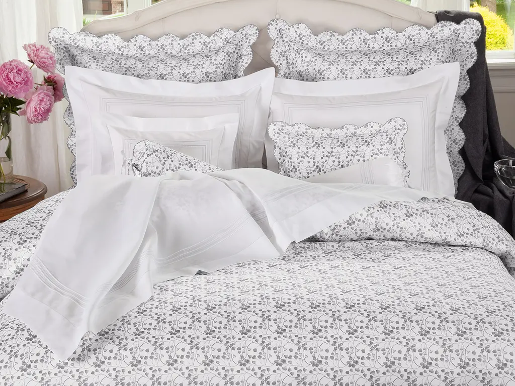 A little variation in shades go a long way, especially when it comes to bedding. So, if you want to take your decor to the next level, this beautifully printed collection from Italy is ready to please. Budding pattern pops to life on 300 thread count Egyptian cotton sateen and mini scallops add striking layers of dimension and added depth that instantly make any environment feel more visually interesting. Available in soft Beige or Gray because with a statement this powerful, you don’t have to be loud.