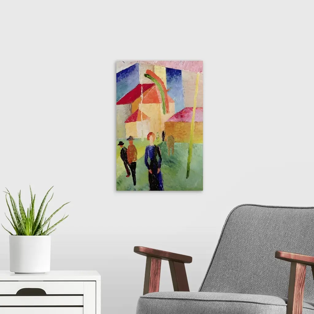 BAL41079 Church Decorated with Flags (oil on canvas) by Macke, August (1887-1914); 48x34 cm; Stadtisches Museum, Mulheim, Germany; German, out of copyright