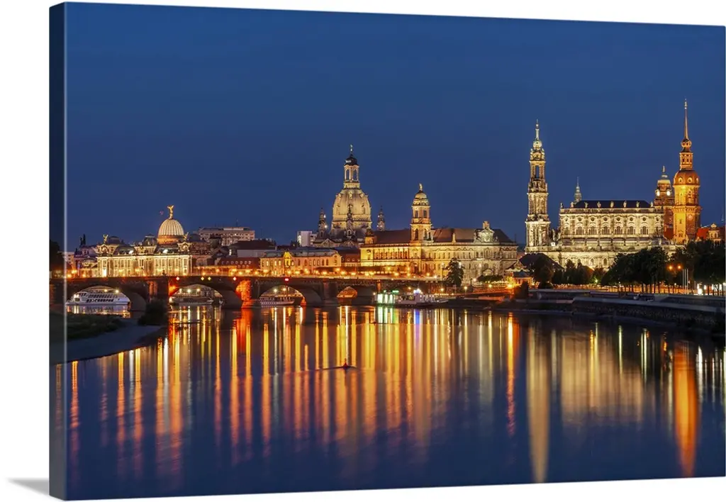 Church lit up at dusk, Dresden, Germany wall art for home and office decor. Discover canvas art prints, photos, mural, big canvas art and framed wall art in GreatBigCanvas.com's varied collections.