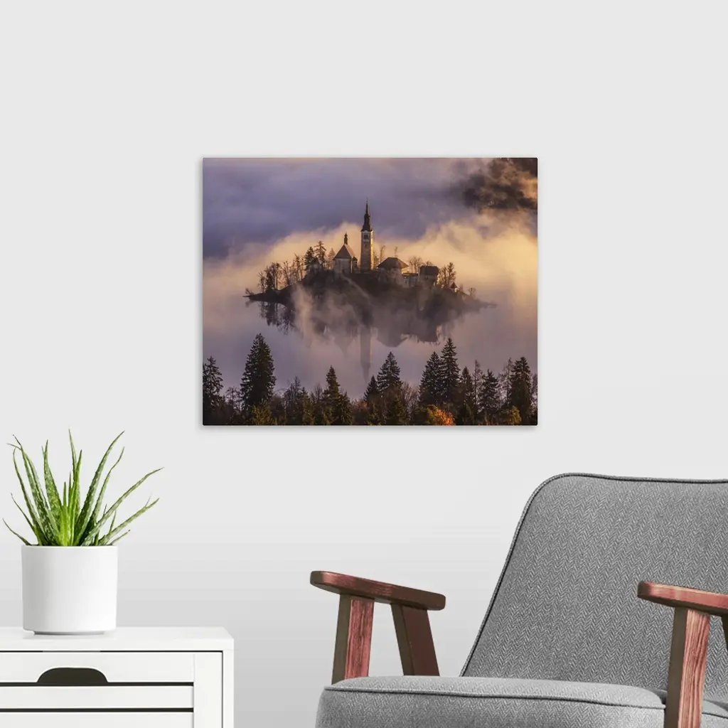 Church on the Island in Mist, Sunrise wall art for home and office decor. Discover canvas art prints, photos, mural, big canvas art and framed wall art in GreatBigCanvas.com's varied collections.