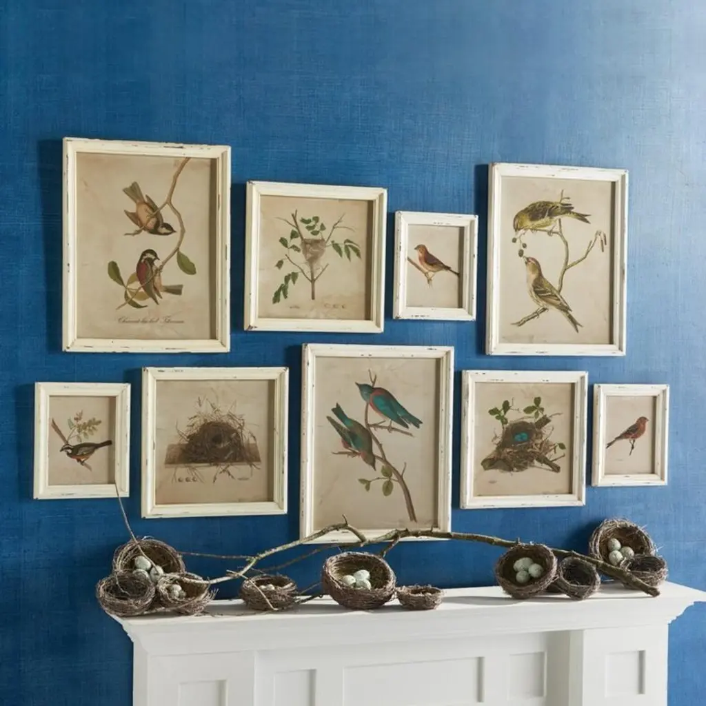 Cielo Bird And Nest Animals & Nature White Frame Illustration - Set Of 9