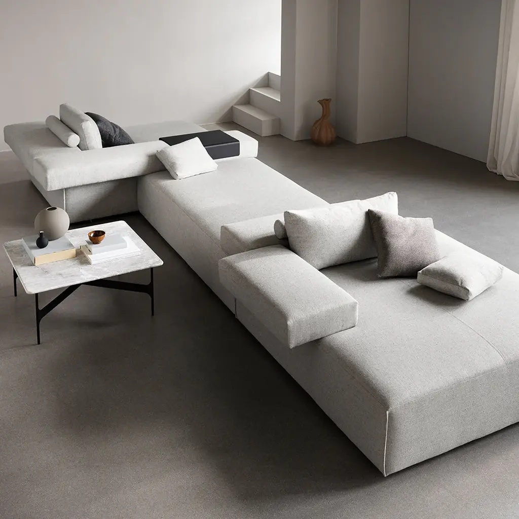 Presented as a great island – floating in a grand space, Cinder Block gives you a multitude of possibilities for creating a sofa that will remain unique in its expression and make a great impression as well. Cinder Block is designed for Wendelbo by Luca Nichetto.