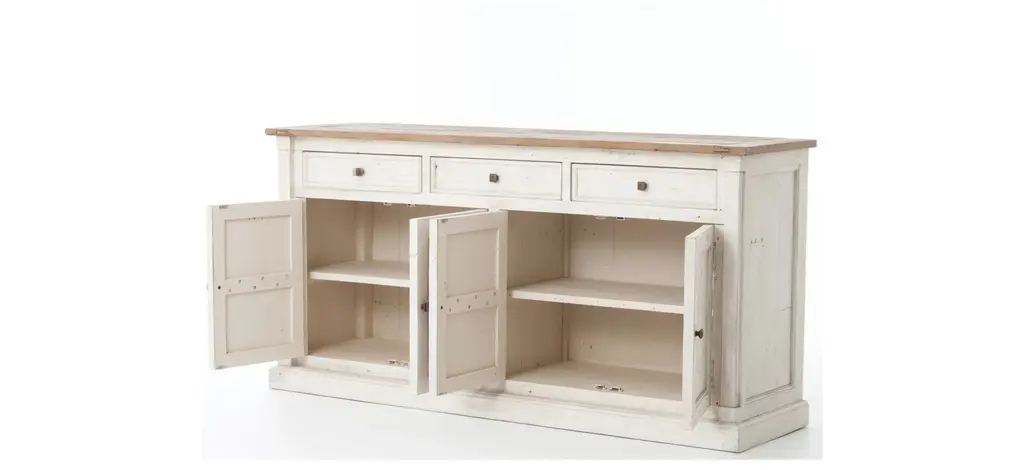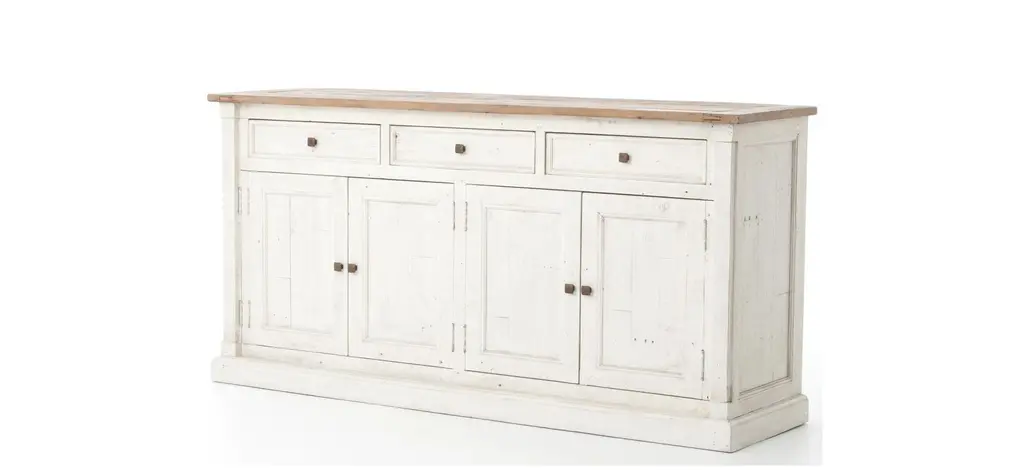 This spanish inspired Cintra sideboard has been transformed from reclaimed pallet wood and features ample storage with a simple and naturally distressed finish.