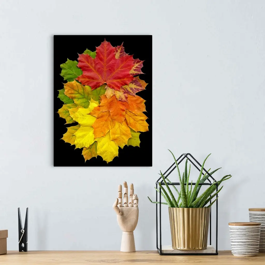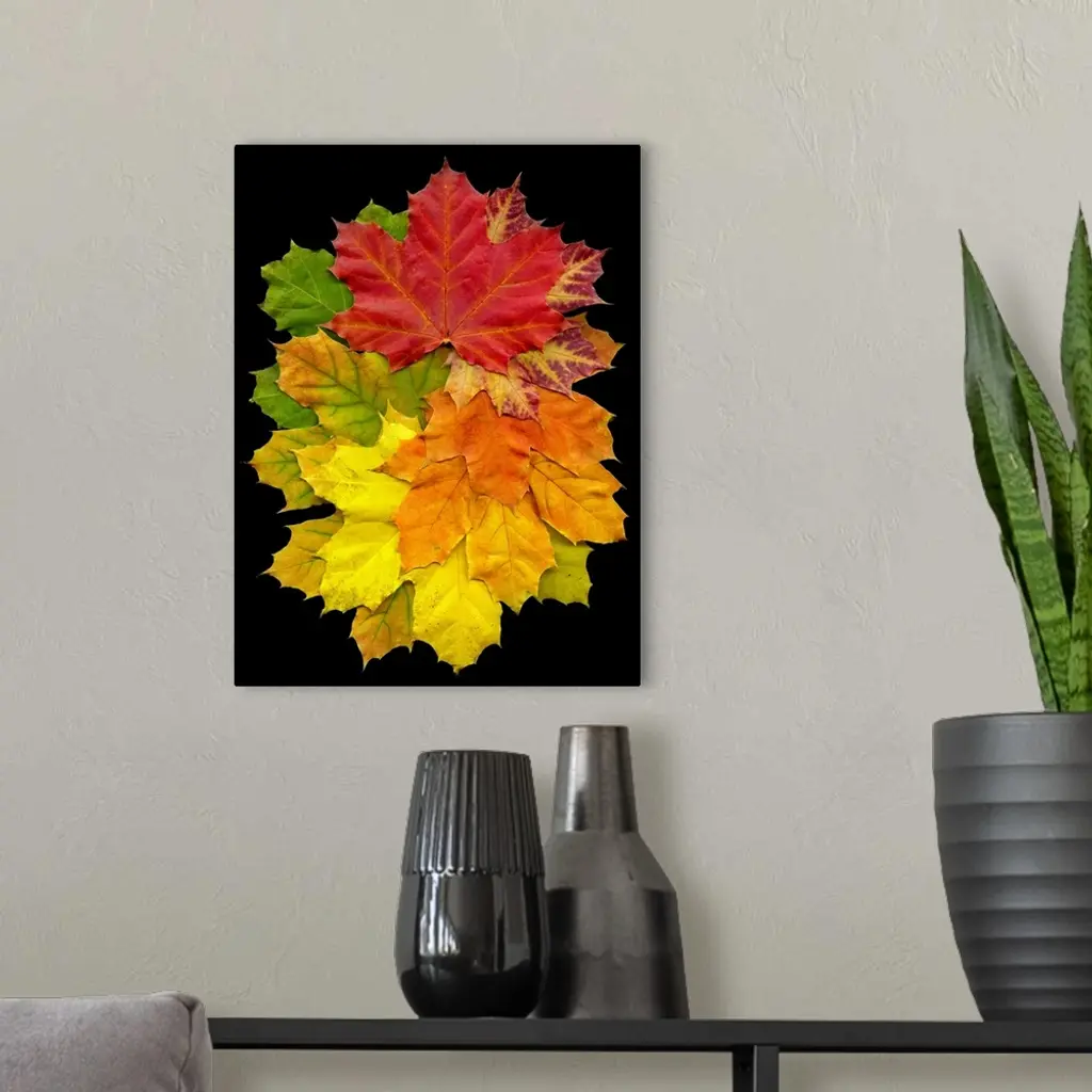 A collection of fall leaves in a variety of colors including red, green, yellow, and orange.