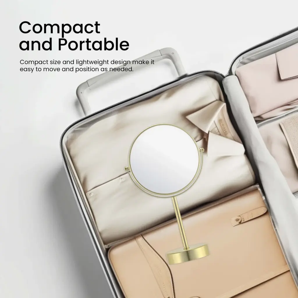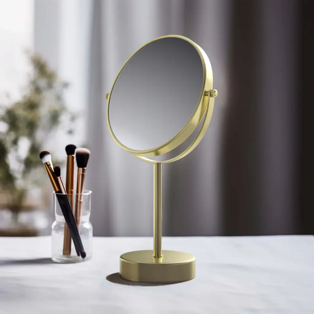 Circular Free Standing Magnifying Make Up Mirror, Brushed Gold