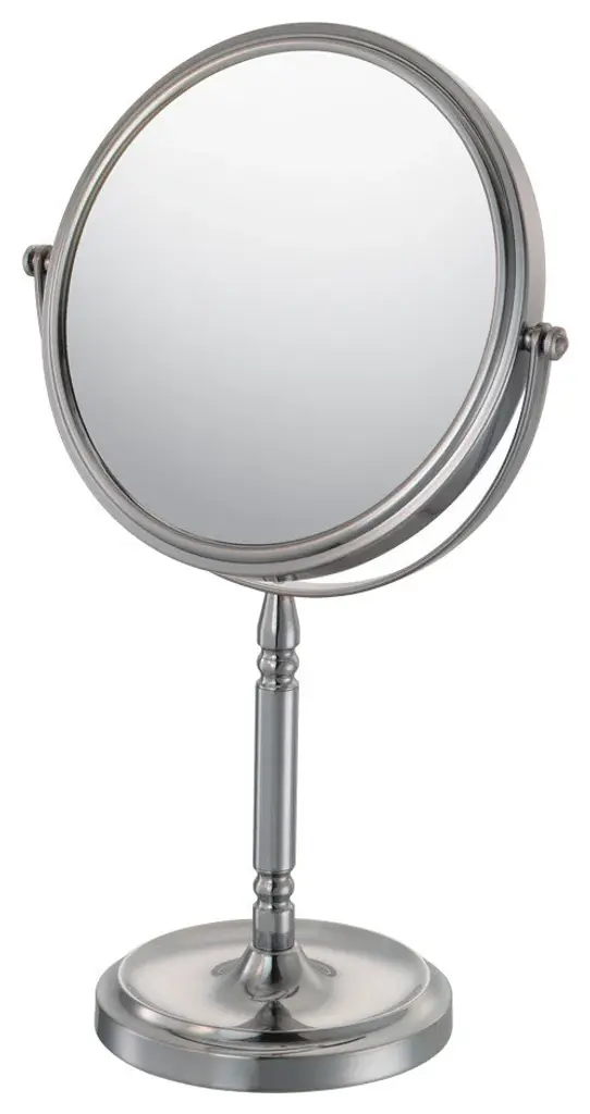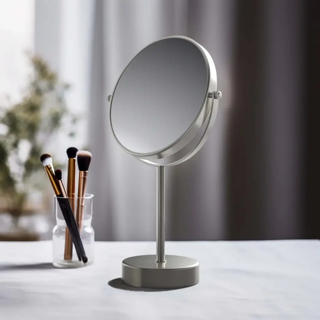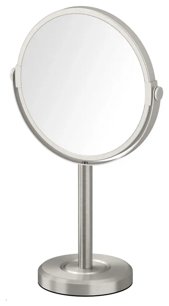 Circular Free Standing Magnifying Make Up Mirror, Brushed Nickel