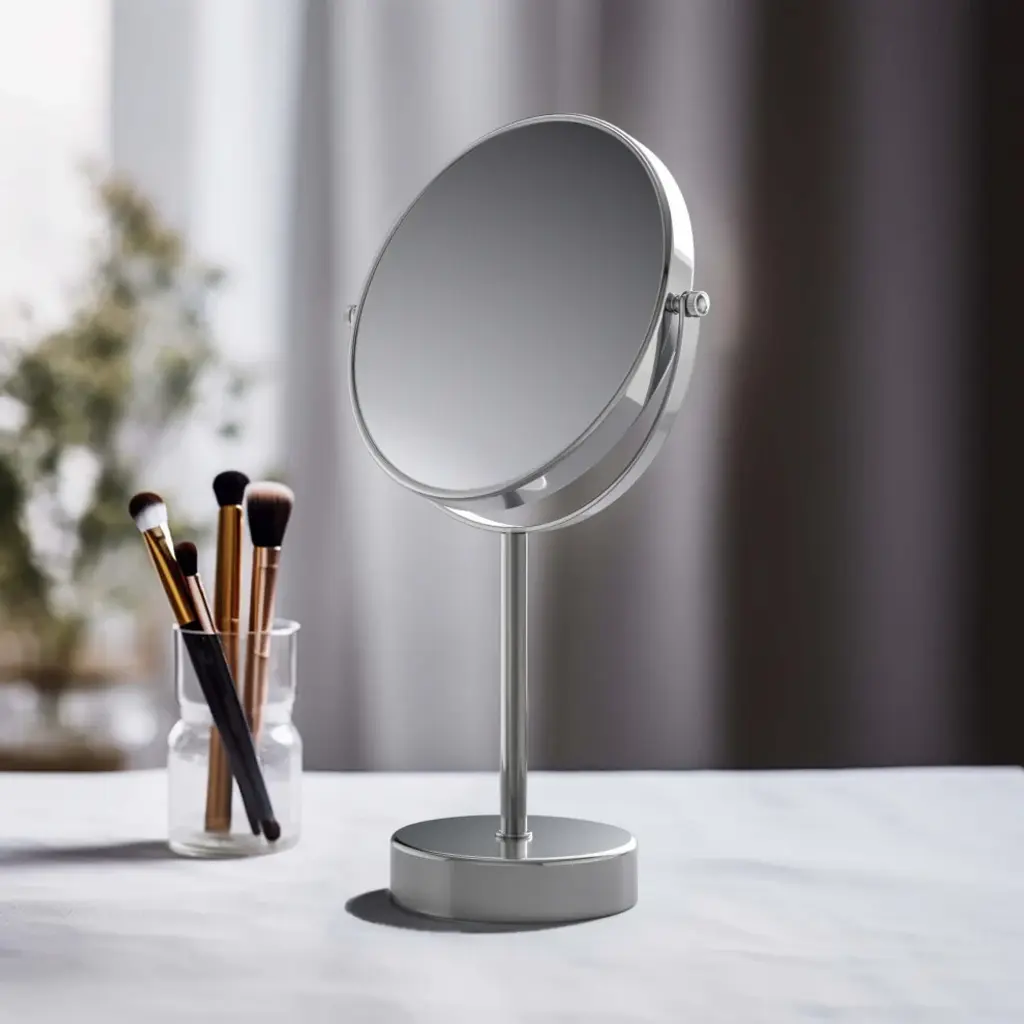 Circular Free Standing Magnifying Make Up Mirror, Chrome