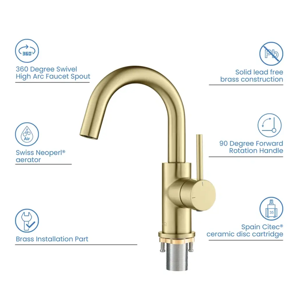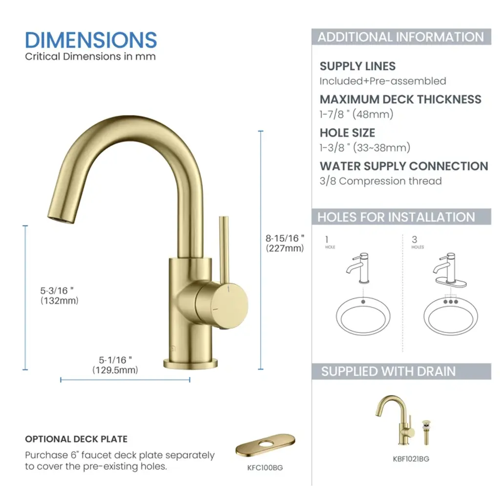Circular Single Hole Bathroom Faucet With Drain Assembly