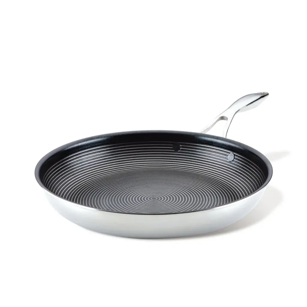 Extreme nonstick that won’t scratch ever. From the inventors of hard-anodized nonstick cookware comes the Circulon A1 Series with scratch defense technology. Open up a new dimension in scratch resistance and unbeatable nonstick performance and longevity with ground-breaking scratch defense nonstick technology crafted with durable aerospace-grade materials to create a thicker and harder surface than ordinary nonstick and eliminate scratching, sticking, and flaking with our most advanced nonstick yet. Cook with complete confidence using this dishwasher-safe frying pan with a triple-layer nonstick cooking surface that lasts 130X longer than the competition and stands up to laboratory tests simulating 200 years of daily wear and tear. This performance-primed and feature-forward nonstick skillet is dishwasher safe, oven safe to 400 degrees F, and built with an aluminum core for fast, all-over heat delivery and a thick, induction-suitable stainless steel base to boost durability and heat retention. Pioneering technology. Extreme durability. Flawless performance. The Circulon A1 Series with scratch defense technology is complete toughness and re-engineered for total cooking confidence.