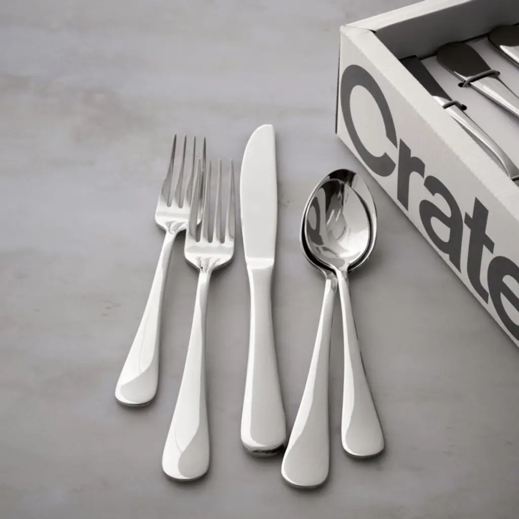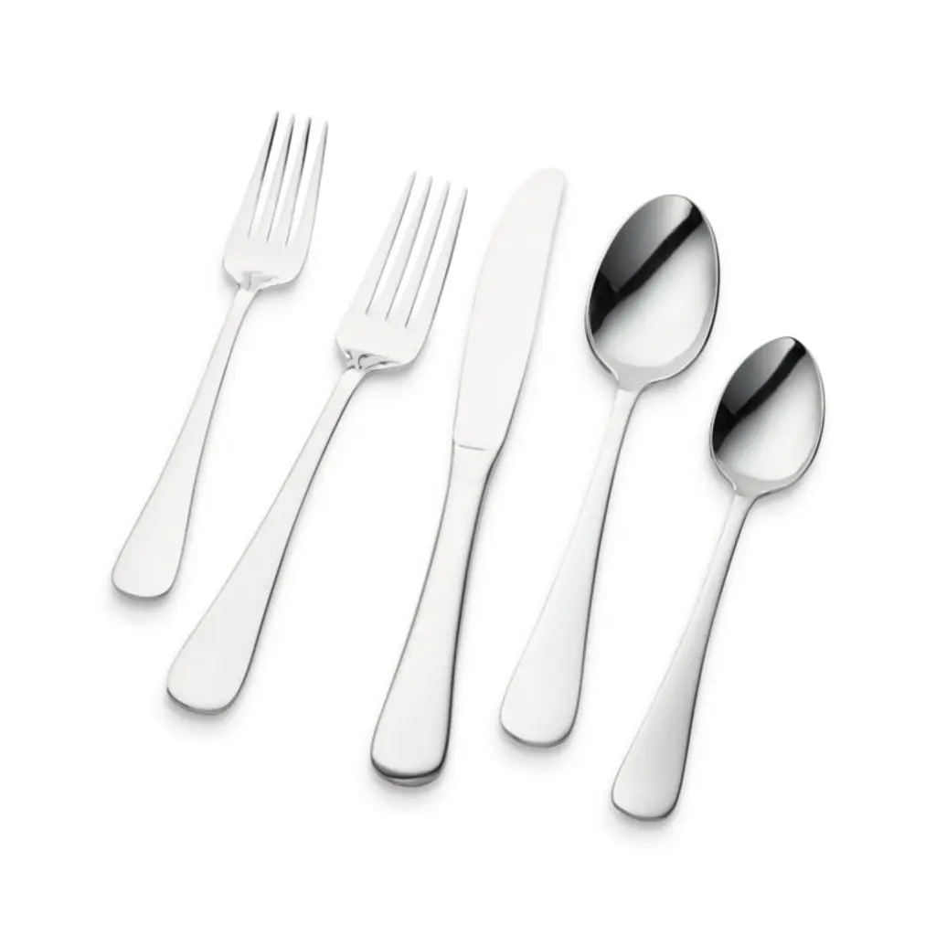 The classics will never go out of style. Traditional European design makes this flatware perfect for every day, every occasion. Stamped stainless steel utensils with a mirror finish have pleasing curves and a timeless aesthetic, and are dishwasher-safe for easy cleaning after weekday meals and festive gatherings. Each of the eight 5-piece place settings consists of a dinner fork, salad fork, dinner spoon, teaspoon and dinner knife. This set also includes eight extra teaspoons, two serving spoons, slotted serving spoon and serving fork.