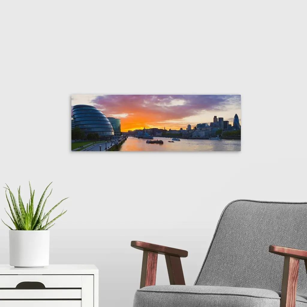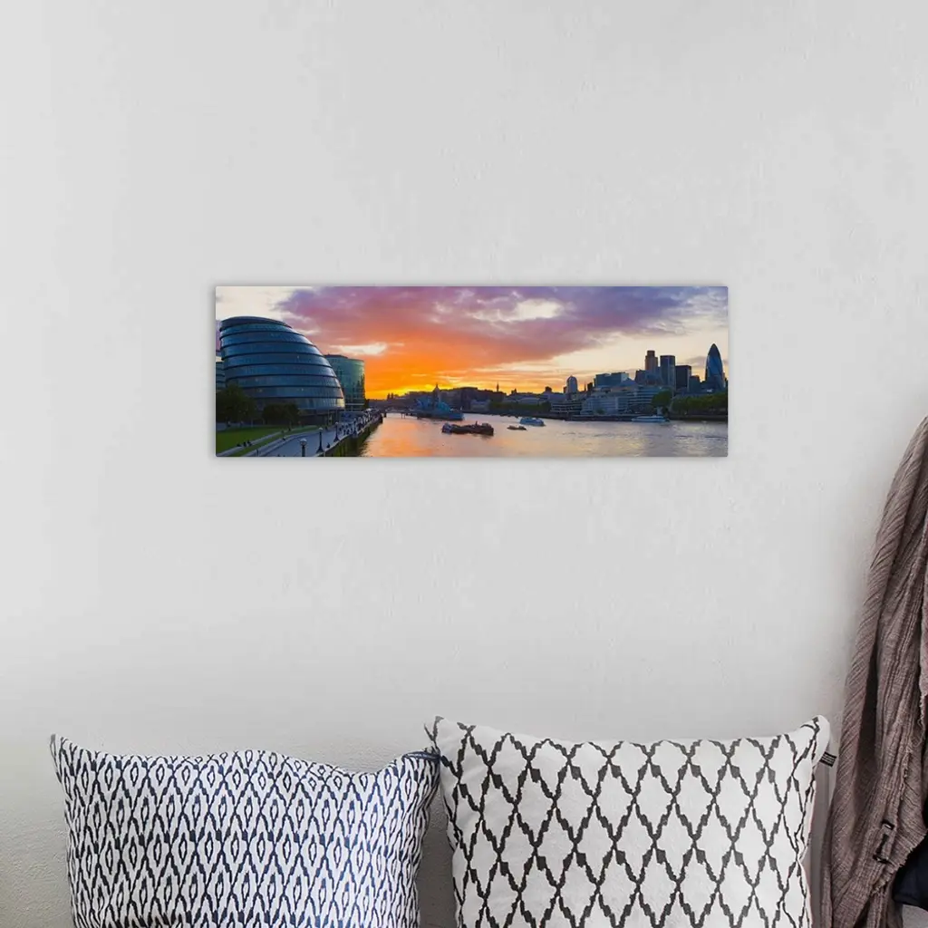 City hall with office buildings at sunset Thames River London England wall art for home and office decor. Discover canvas art prints, photos, mural, big canvas art and framed wall art in GreatBigCanvas.com's varied collections.