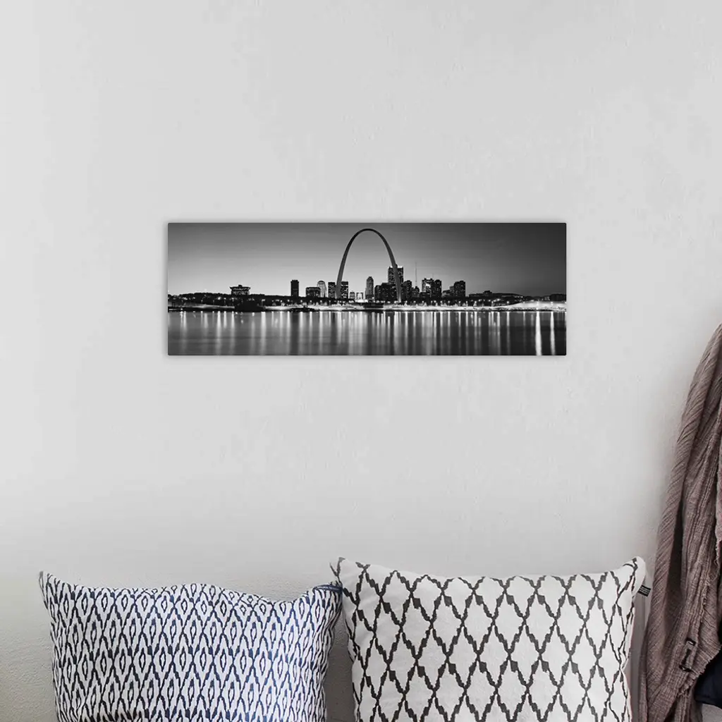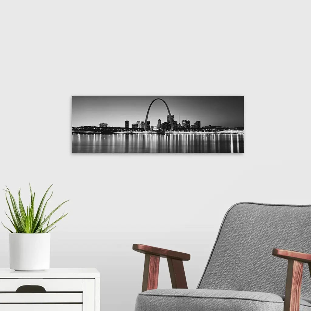 Panoramic photo on canvas of the St. Louis skyline at night.