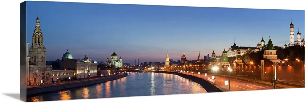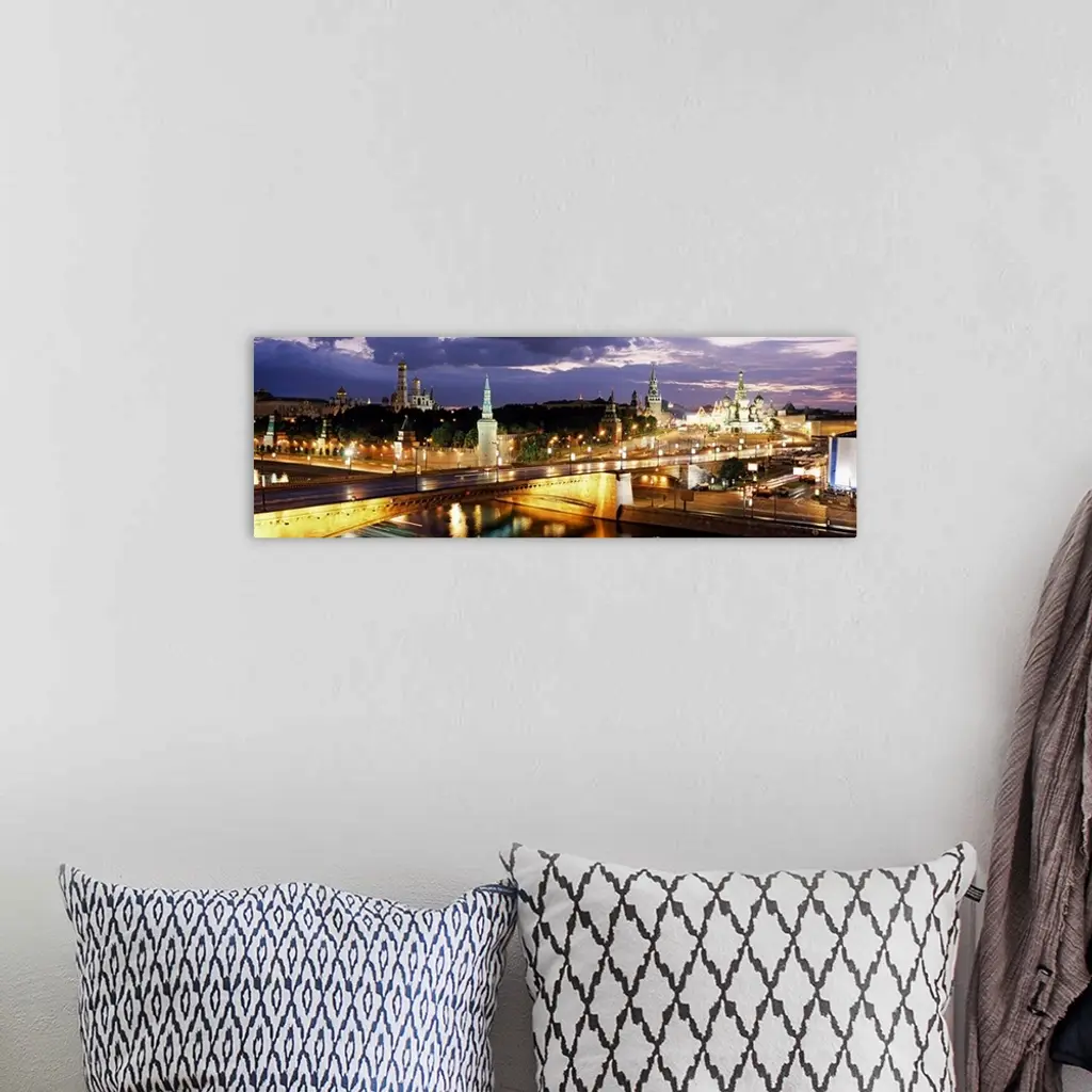 City Lit Up At Night Red Square Kremlin Moscow Russia