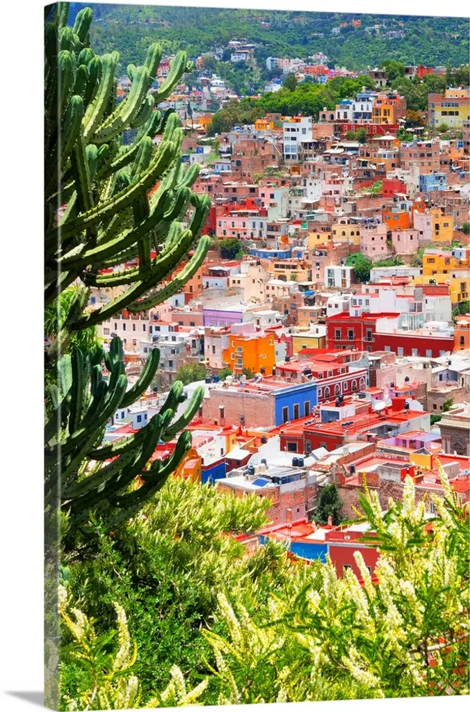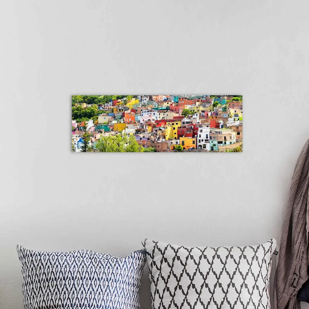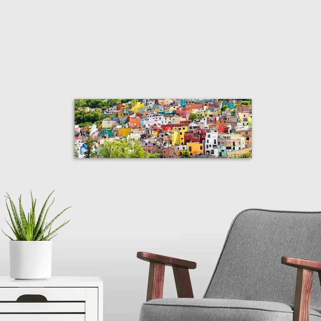 Colorful panoramic photograph of a cityscape in Guanajuato, Mexico. From the Viva Mexico Panoramic Collection.