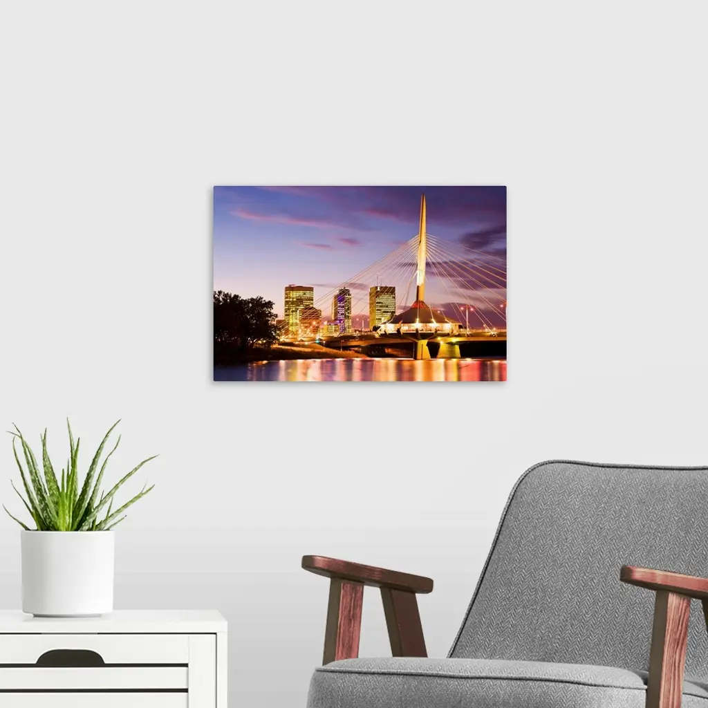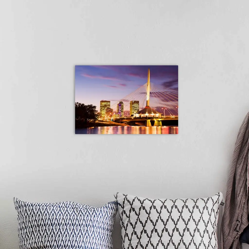 City Skyline And Provencher Bridge At Dusk, Winnipeg, Manitoba, Canada wall art for home and office decor. Discover canvas art prints, photos, mural, big canvas art and framed wall art in GreatBigCanvas.com's varied collections.