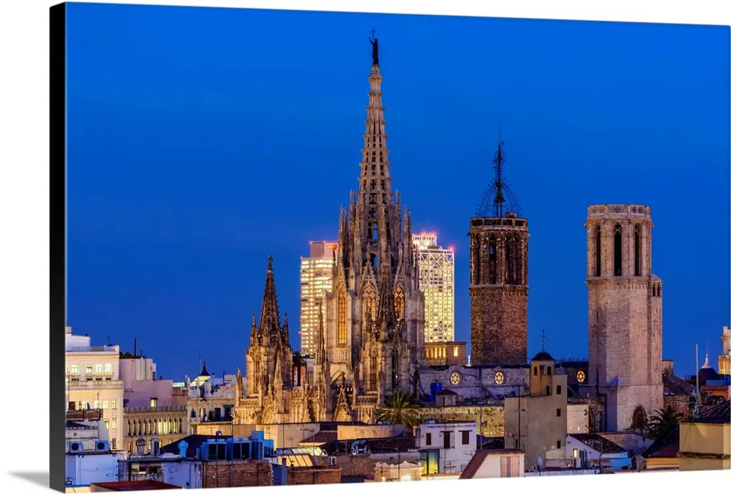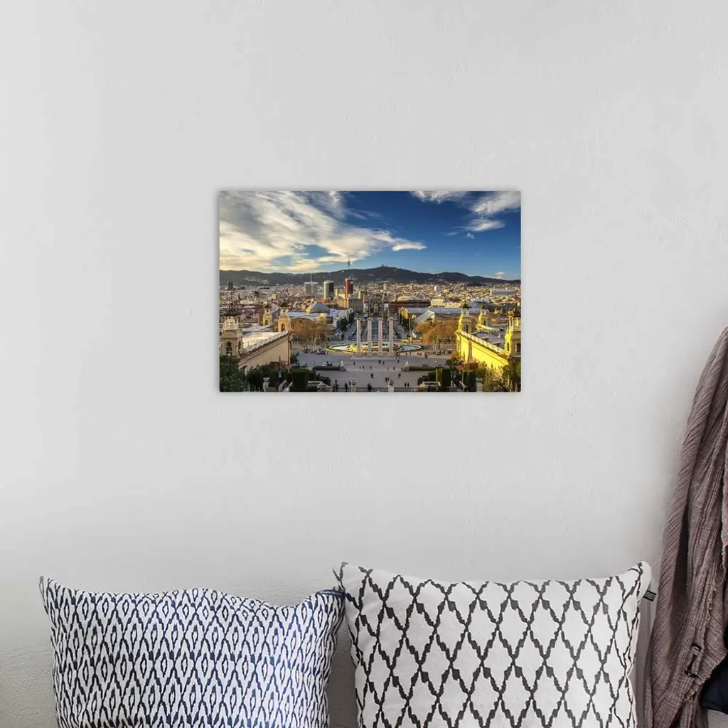 City Skyline At Sunset From Montjuic, Barcelona, Catalonia, Spain