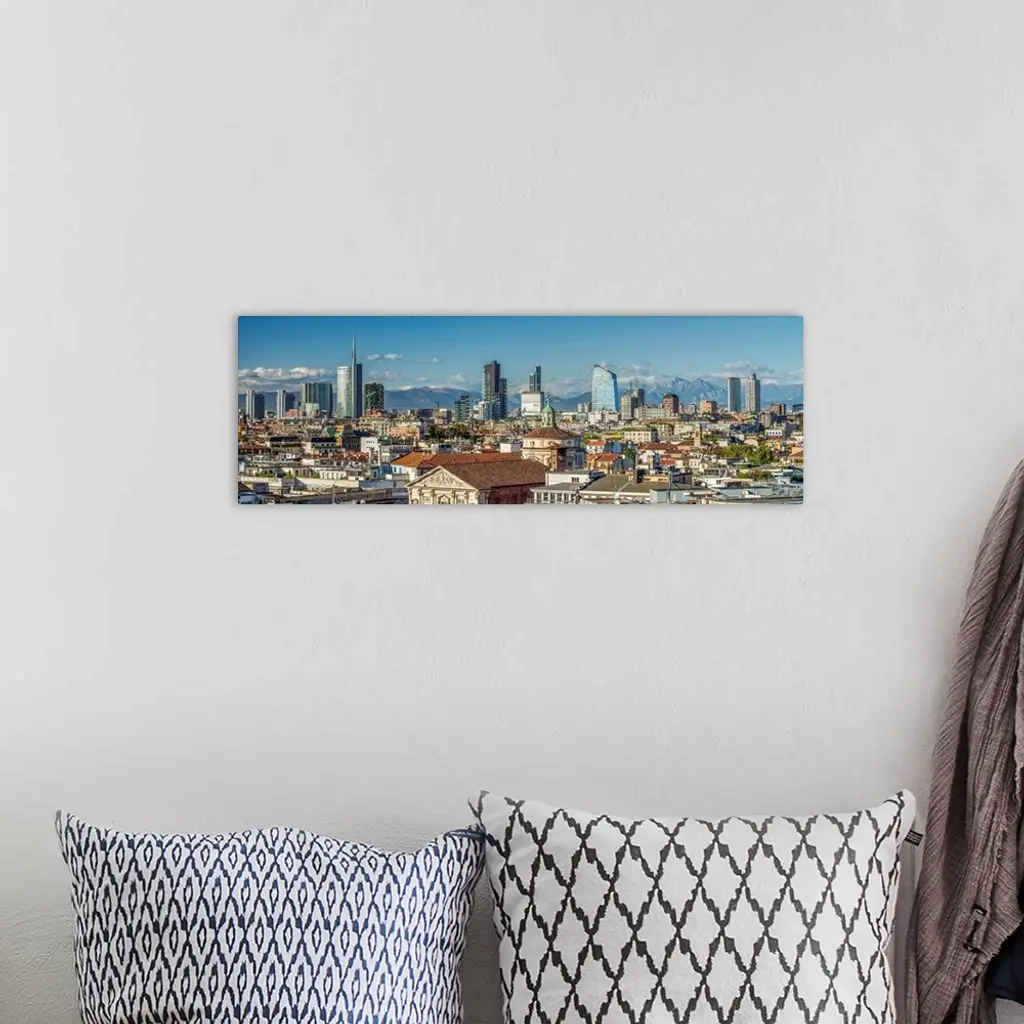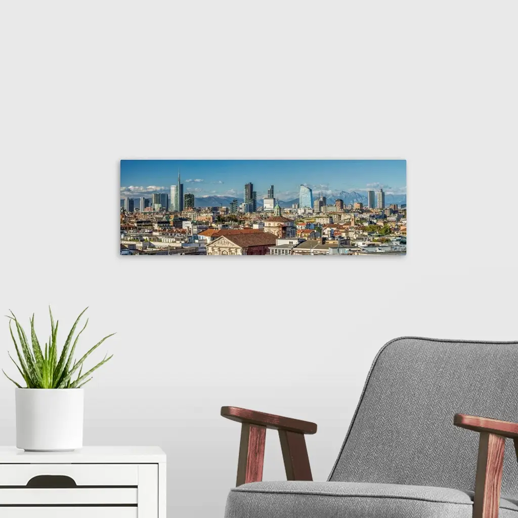 City skyline with the Alps in the background, Milan, Lombardy, Italy