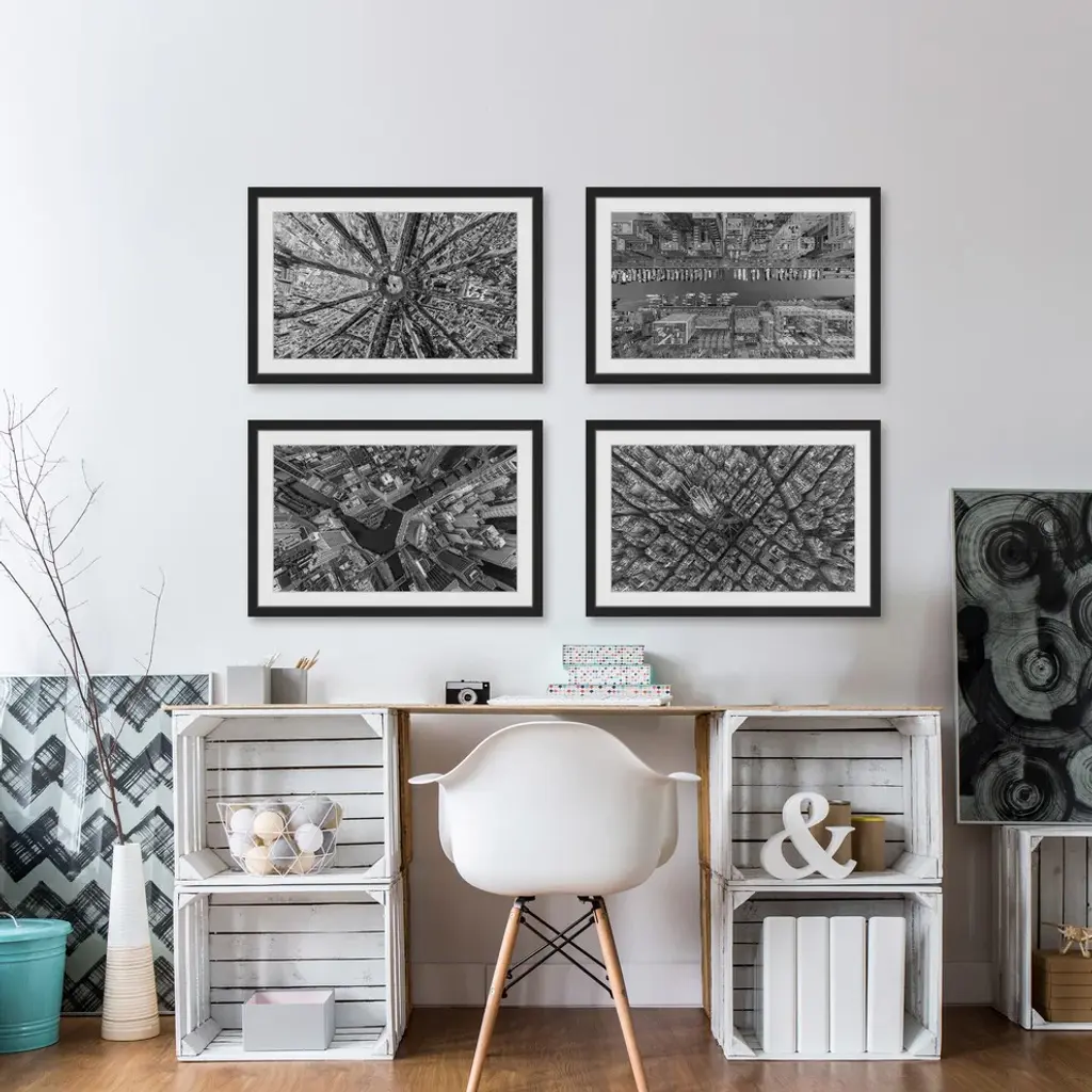 - (4) panels of 45x30- Top quality Giclee print on high resolution Archive Paper- Professionally framed and mounted on acid free archive matte- High quality durable non-warping frame- Arrives ready to hang- Includes a certificate of authenticity- Made in the USA